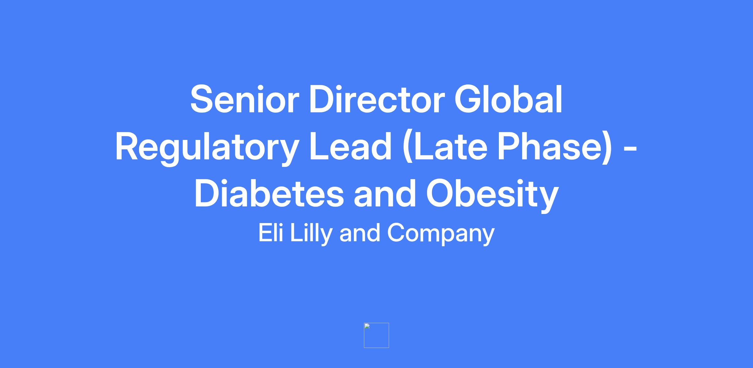 Senior Director Global Regulatory Lead (Late Phase) - Diabetes and Obesity. Develop and implement global regulatory strategies for assigned products, lead a Global Regulatory Team, and ensure alignment with global and regional objectives to support lifecycle management and commercial goals.