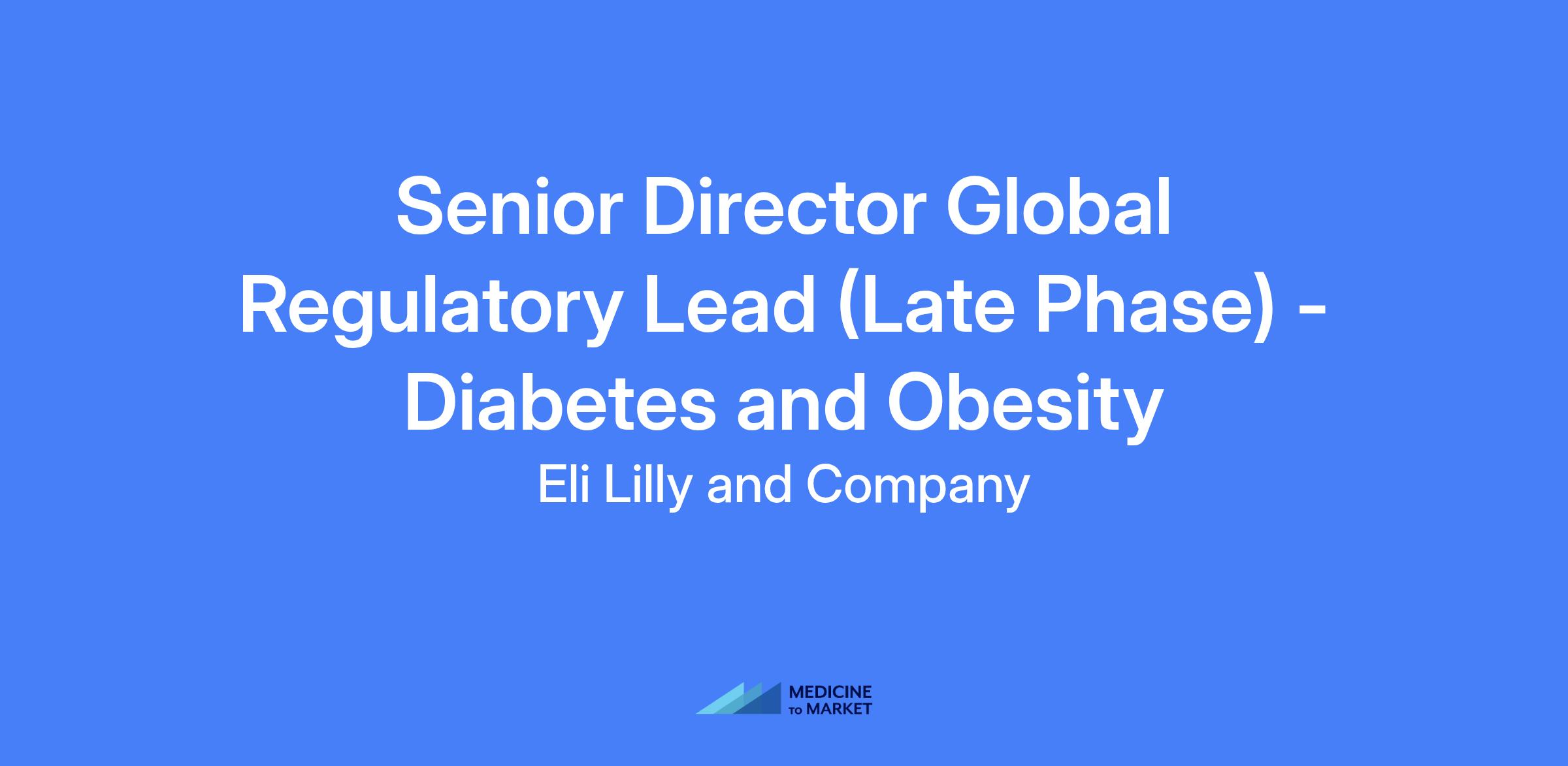 Senior Director Global Regulatory Lead (Late Phase) - Diabetes and Obesity. Develop and implement global regulatory strategies for assigned products, lead a Global Regulatory Team, and ensure alignment with global and regional objectives to support lifecycle management and commercial goals.