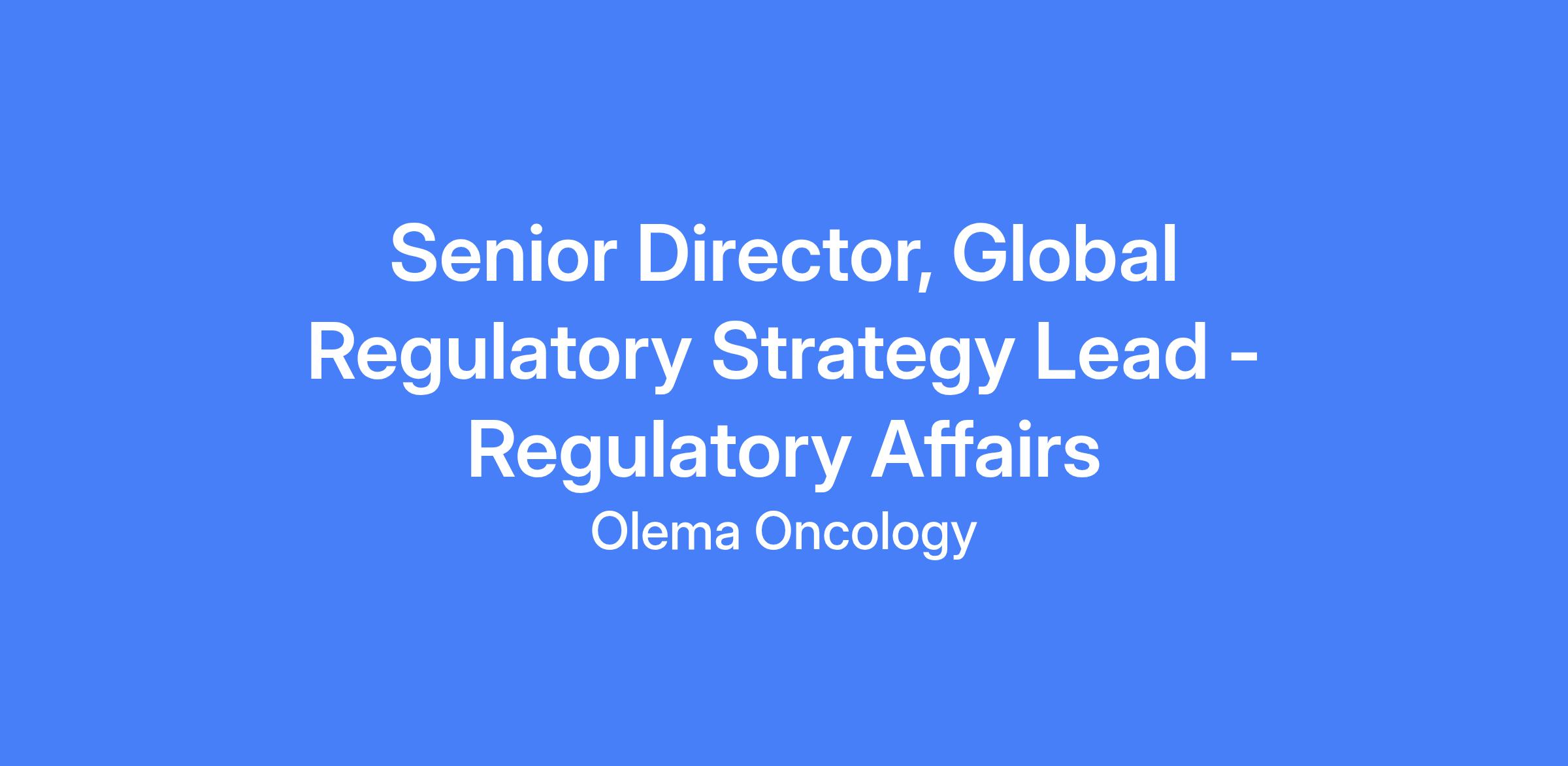 - Lead the development and execution of innovative regulatory strategies supporting Olema products.