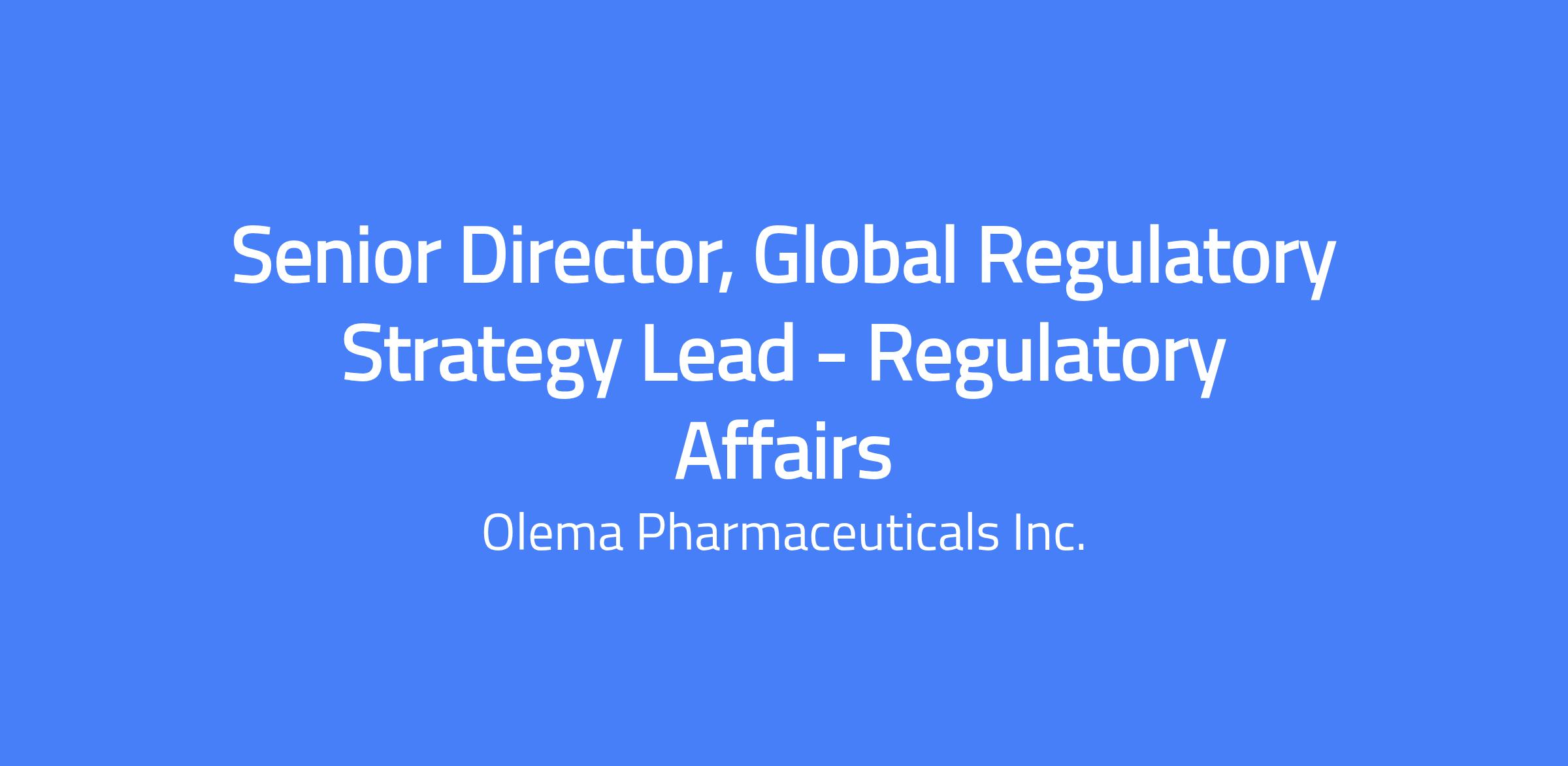 - Develop innovative global regulatory strategies for the Olema portfolio of products, in clinical development and life-cycle management, as neededÂ