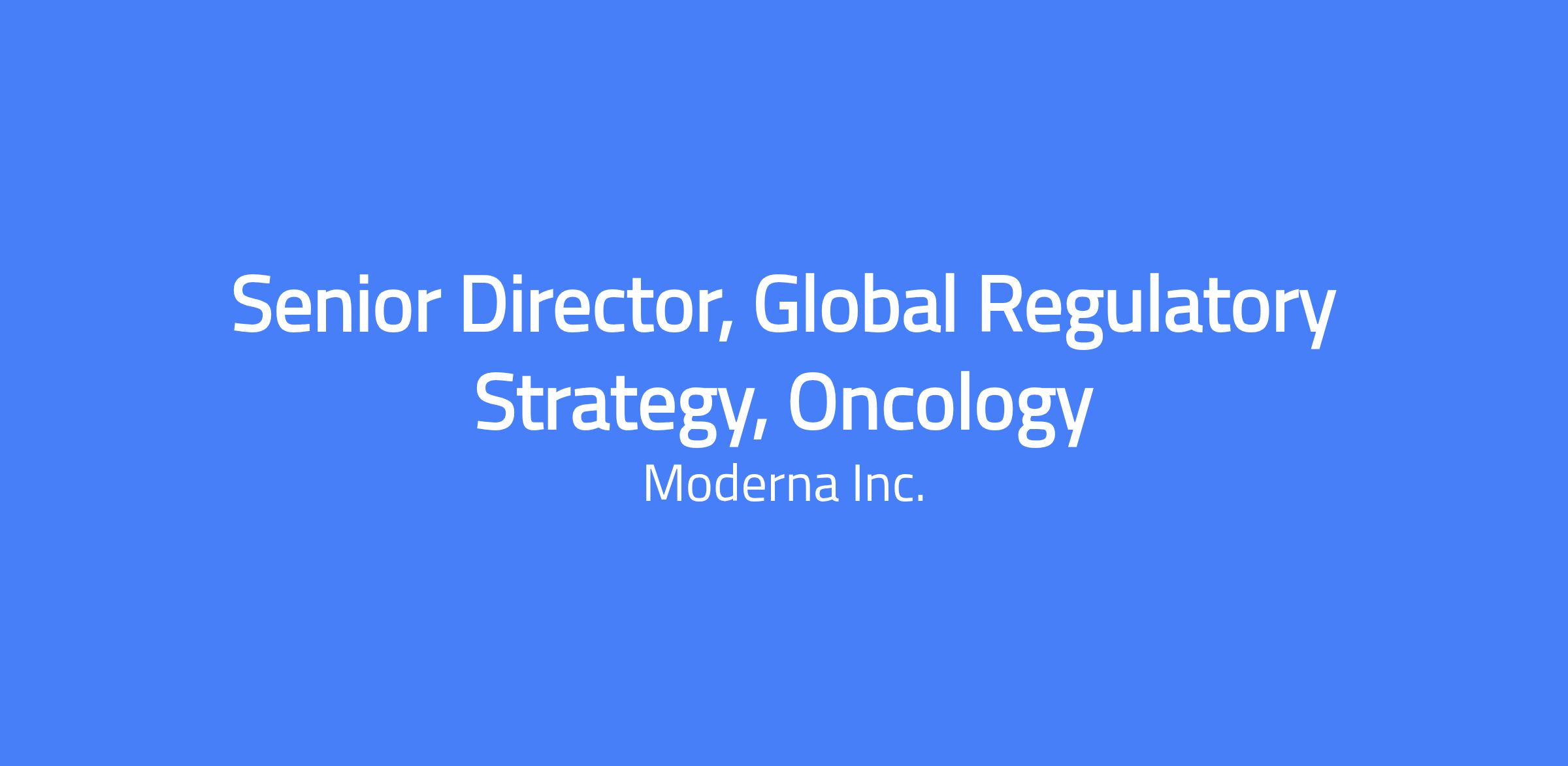 The role Moderna is seeking an individual to lead development and execution of global regulatory strategy for programs in its oncology portfolio. This leader will shape regulatory pathways for novel, first-in-class therapeutics and drive successful global development and registration strategies. This role requires a seasoned regulatory leader who embodies Moderna’s leadership principles: acting with urgency, challenging convention, delivering with excellence, and operating as an enterprise leader. The individual will demonstrate executive presence, deep functional expertise, and a strong execution track record while elevating strategic impact across programs. Here's What You’ll Do Lead global regulatory strategies from early development through commercialization Drive regulatory submissions (INDs, CTAs, BLAs/MAAs) with excellence and urgency Lead health authority interactions (FDA, EMA, PMDA), including high-stakes negotiations Shape strategies for novel and first-in-class therapies Partner cross-functionally and across alliances to align on strategy Anticipate regulatory risks and proactively mitigate them Build and develop high-performing regulatory teams Continuously elevate strategic thinking across programs and stakeholders Interpret health authority feedback through a trend-based, cross-program lens Connect individual HA interactions to a broader regulatory narrative Bring regulatory thinking earlier into research and development and define success upfront Proactively identify risks before they emerge in HA feedback Navigate novel endpoints and evolving evidentiary frameworks Operate effectively in complex global regulatory environments with limited precedent Develop teams to operate with independence and strong strategic judgment Here’s What You’ll Need (Basic Qualifications) BA/BS degree in a scientific/engineering discipline 12+ years of experience in the Pharmaceutical industry 8+ years of experience in Regulatory strategy, including oncology Strong knowledge of current US and EU regulations, including specifically: e.g. novel regulatory pathways. Strong experience with CTD format and content regulatory filings Exceptional written and oral communication Experience with developing and implementing competitive regulatory strategies Demonstrated track record in securing product approvals and maintaining a complex portfolio Experience dealing with broad range of stakeholders at all levels internal and external to the company Demonstrated competence in employee management and development Knowledge of and broad experience with regulatory procedures and legislation for drug development, product registration, line extension and license maintenance – preferably from at least both US and EU Direct experience of leading regulatory authority meetings in different phases of drug development Here’s What You’ll Bring to the Table (Preferred Qualifications) Graduate degree in a scientific discipline or other relevant graduate discipline or professional certification Delivery of at least one major application (NDA/BLA/MAA/JNDA etc.) Pay & Benefits At Moderna, we believe that when you feel your best, you can do your best work. That’s why our US benefits and global well-being resources are designed to support you—at work, at home, and everywhere in between. Best-in-class healthcare coverage, plus voluntary benefit programs to support your unique needs A holistic approach to well-being, with access to fitness, mindfulness, and mental health support Family planning benefits, including fertility, adoption, and surrogacy support Generous paid time off, including vacation, volunteer days, sabbatical, global recharge days, and a discretionary year-end shutdown Savings and investment opportunities to help you plan for the future Location-specific perks and extras The salary range for this role is $196,700.00 - $353,400.00. This is the lowest to highest salary we in good faith believe we would pay for this role at the time of this posting. An individual’s position within the salary range will be based on several factors including, but not limited to, specific competencies, relevant education, qualifications, certifications, experience, skills, performance, and business or organizational needs. The successful candidate may be eligible for an annual discretionary bonus, other incentive compensation, or equity award, subject to company plan eligibility criteria and individual performance. About Moderna Since our founding in 2010, we have aspired to build the leading mRNA technology platform, the infrastructure to reimagine how medicines are created and delivered, and a world-class team. We believe in giving our people a platform to change medicine and an opportunity to change the world. By living our mission, values, and mindsets every day, our people are the driving force behind our scientific progress and our culture. Together, we are creating a culture of belonging and building an organization that cares deeply for our patients, our employees, the environment, and our communities. We are proud to have been recognized as a Science Magazine Top Biopharma Employer, a Fast Company Best Workplace for Innovators, and a Great Place to Work in the U.S. If you want to make a difference and join a team that is changing the future of medicine, we invite you to visit modernatx.com/careers to learn more about our current opportunities. Our Working Model  As we build our company, we have always believed an in-person culture is critical to our success. Moderna champions the significant benefits of in-office collaboration by embracing a 70/30 work model. This 70% in-office structure helps to foster a culture rich in innovation, teamwork, and direct mentorship. Join us in shaping a world where every interaction is an opportunity to learn, contribute, and make a meaningful impact. Moderna is a smoke-free, alcohol-free, and drug-free work environment. Equal Opportunities Moderna is committed to equal 