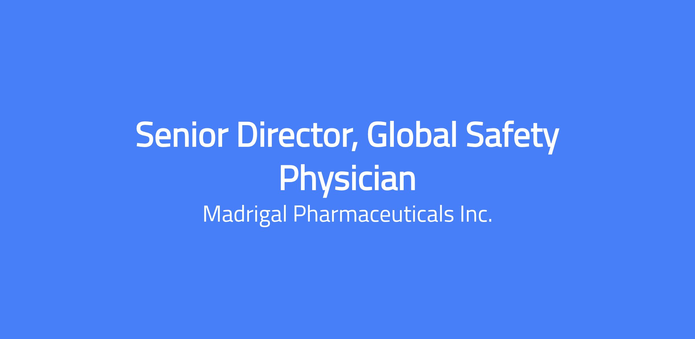 Madrigal is a biopharmaceutical company focused on delivering novel therapeutics for metabolic dysfunction-associated steatohepatitis (MASH), a serious liver disease that can progress to cirrhosis, liver failure, need for liver transplantation and premature mortality. Every member of our Madrigal team is connected by our shared purpose: leading the fight against MASH. Madrigal’s medication, Rezdiffra (resmetirom), is a once-daily, oral, liver-directed THR-β agonist designed to target key underlying causes of MASH. Rezdiffra is the first and only medication approved by both the FDA and European Commission for the treatment of MASH with moderate to advanced fibrosis (F2 to F3). An ongoing Phase 3 outcomes trial is evaluating Rezdiffra for the treatment of compensated MASH cirrhosis (F4c). Our success is driven by our people. We are building a dynamic, inclusive, and high-performing culture that values scientific excellence, operational rigor, and collaboration. To support our continued growth, we are strengthening our workforce strategy to ensure we have the right talent, at the right time, in the right way. Position Responsibilities: The Senior Director, Global Safety Physician plays a key role in ensuring patient safety in clinical studies and those receiving marketed products. This role is responsible for continuous assessment of safety data, signal detection, and benefit-risk evaluation for assigned compounds in development and in the postmarketing setting. The role requires strong collaboration within Global Clinical Safety and Pharmacovigilance and across Clinical Development, Regulatory Affairs, Biostats, and Clinical Operations, with leadership and key contributions to regulatory filings and global safety governance activities. The Senior Director will serve as a medical expert for safety matters, supporting both investigational and marketed products. Additionally, the role will lead clinical safety strategy, author and review safety-related documents and responses to health authority queries, and support regulatory interactions. Key Responsibilities: Medical Oversight & Signal Management Provide medical oversight for clinical safety signals, including review and interpretation of safety data from clinical trials, spontaneous reports, and literature. Lead or participate in safety signal detection, evaluation, validation, and documentation in collaboration with safety scientists and other stakeholders. Serve as a key member or chair of Safety Management Teams (SMTs), contributing to benefit–risk assessments and mitigation strategies. Regulatory & Scientific Contributions Author or medically review safety content in critical regulatory documents such as: DSURs, PBRERs, RMPs, IBs, and safety sections of clinical study reports Provide expert medical input for regulatory filings and interactions, including INDs, NDAs/BLAs, and safety responses to agency queries. Support inspection readiness and audit activities related to clinical safety documentation. Cross-functional Collaboration Partner with Clinical Development, Biostats, and Regulatory Affairs to align on safety strategy and ensure scientifically sound decision-making. Collaborate with PV Operations, Safety Data Management, and Medical Review teams to ensure quality and consistency in safety case evaluations. Participate in internal governance forums such as Safety Review Committees (SRCs) or benefit–risk assessment boards. Experience and Professional Qualifications: The applicant should be a dynamic leader who thrives within a fast-paced, growing, and collaborative, publicly owned biopharmaceutical company: Deep knowledge of GCP, ICH E2E, GVP modules, and global regulatory safety expectations Proven track record of leadership across phase I-IV studies and familiarity with post-marketing surveillance processes Experience with safety database systems (e.g. Argus, ArisGlobal), MedDRA, and safety signal detection tools Experience in a matrixed global environment Specialty training in relevant therapeutic areas a plus Excellent strategic thinking, problem-solving, and influencing skills Deep knowledge of FDA, EMA, PMDA and other regulatory body interactions The ideal candidate displays the following professional competencies: Senior-level leadership and communication skills Strategic thinker with deep scientific and regulatory knowledge Sound judgment in risk-benefit evaluation Ability to make decisions in uncertainty Ability to influence and align cross-functional stakeholders at all levels Ability to deliver executive briefings and board-level updates Ability to anticipate and resolve problems effectively Strong verbal communication and technical writing skills Ability to present clearly using scientific and regulatory terminology Fluent in English language Educational & Experience: MD or equivalent medical degree with licensure or eligibility for licensure 15+ years of combined, relevant experience in industry, clinical safety, pharmacovigilance, or related roles within biotech / pharma Madrigal’s Total Rewards strategy is based on a biotech industry peer group comparator and is inclusive of base pay, bonus and equity. Our equity offers meaningful opportunity allowing our employees to share in the success they help create. By aligning individual and company performance, we empower employees to think like owners, giving them a stake in the organization. All employees receive equity, which we believe reinforces our ownership culture. Base salary is determined by several factors including the candidate’s qualifications, skills, education, experience, business needs and market demands. As of the date of this posting, a good faith estimate of the current pay scale for this position, applicable to all candidates, is $318,000 - $388,000 per year. We comply with all applicable minimum wage laws All full-time employees receive equity, which reinforces our ownership culture and offers meaningful opportunity for our employees to sh