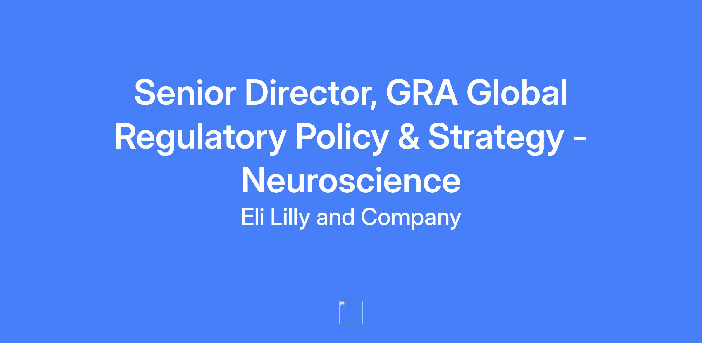 Senior Director, GRA Global Regulatory Policy & Strategy - Neuroscience at Lilly. Global Regulatory Policy & Strategy aims to enable Lilly to deliver innovative regulatory results by identifying policy hurdles and emerging trends, developing advocacy plans based on science-based positions, and engaging broad partner networks to influence regulatory policies that advance patient outcomes and improve efficiency in drug development.