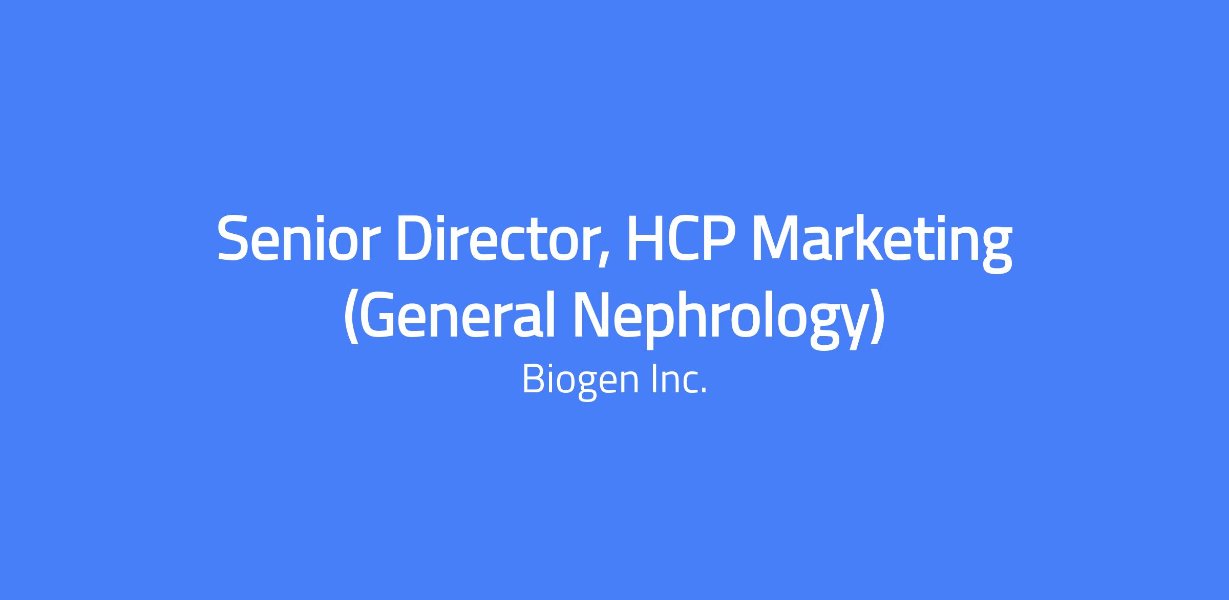 Senior Director, HCP Marketing (General Nephrology)