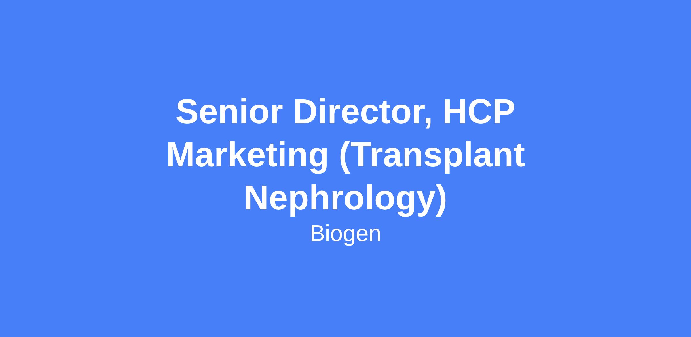 Senior Director of HCP Marketing (Transplant Nephrology) will be a visible leader within the US Nephrology Franchise, responsible for planning and executing HCP activation and educational strategies for upcoming launches. Leads the HCP marketing team in developing and executing U.S. branded and unbranded strategies to educate, activate, and support customers treating Antibody-Mediated Rejection (AMR) and Micro-Vasculature Inflammation (MVI). Reports to the Head of US Nephrology Marketing.