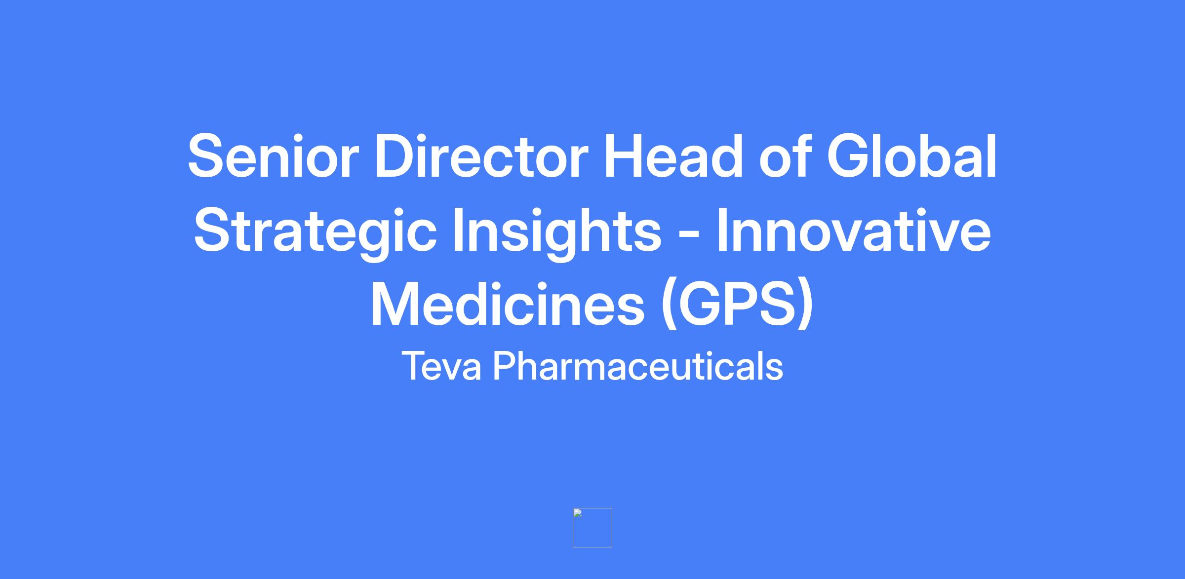 Senior Director Head of Global Strategic Insights - Innovative Medicines (GPS) leads a global insights team to define the long-term strategic vision and commercial strategy for Teva’s neurology and immunology portfolio, translating scientific innovation into long-term brand and business value. The role uncovers HCP, payer, patient and competitive insights to shape product strategies and investment decisions from pipeline to inline assets and BD opportunities. Develops global forecasts and supporting assumptions across the portfolio in collaboration with commercial regions, finance, R&D, and BD.