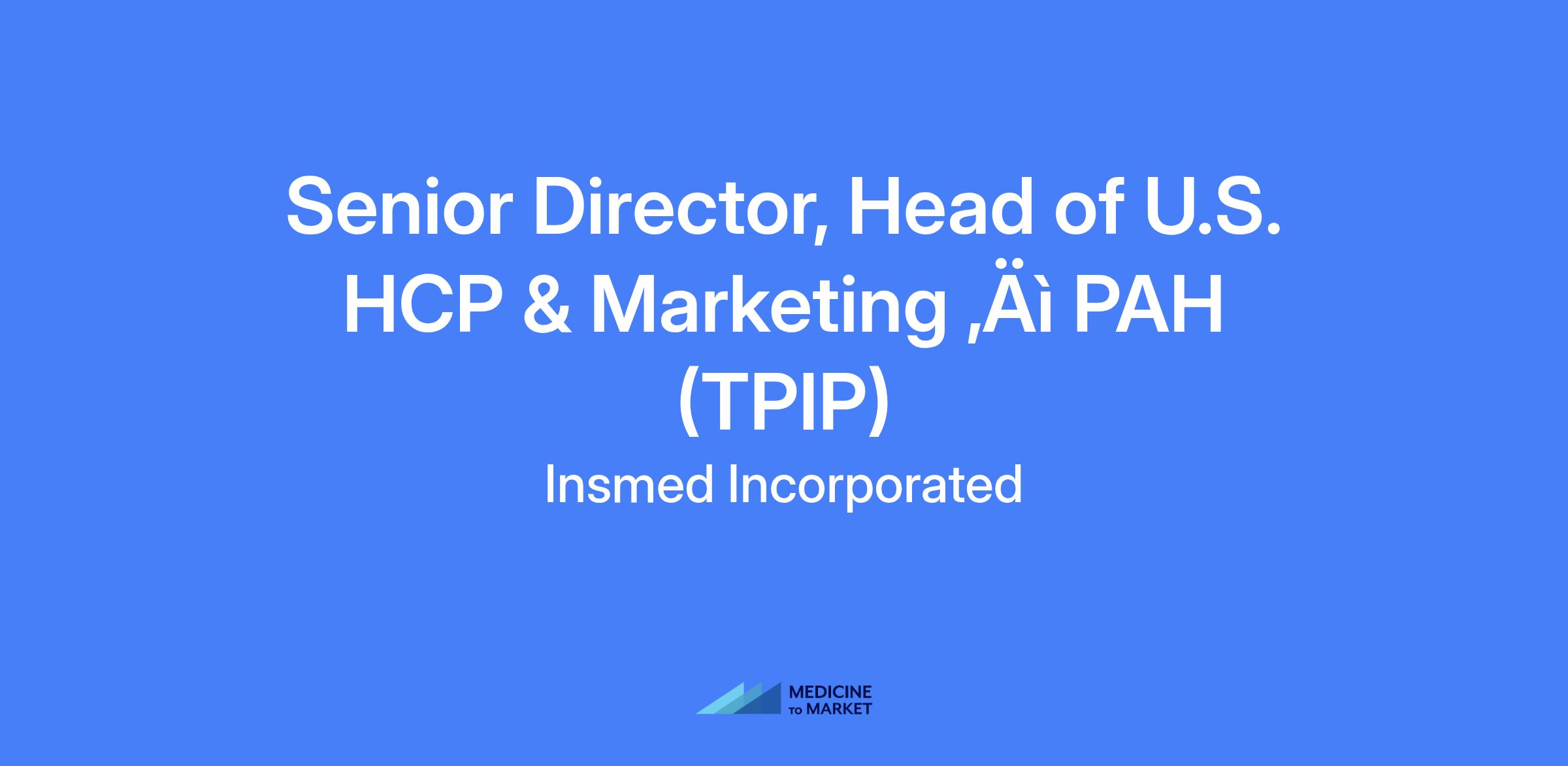 The Senior Director, Head of U.S. HCP Marketing for PAH (TPIP) will shape and execute the professional and payer marketing strategy to ensure successful U.S. launch readiness and long-term adoption, focused on the U.S. market.