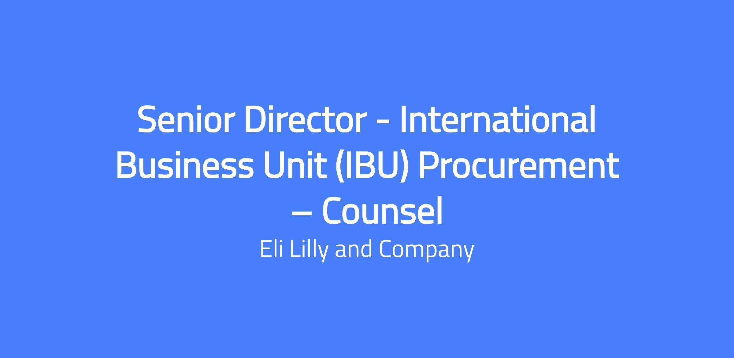 Senior Director - International Business Unit (IBU) Procurement – Counsel. This role partners with Lilly’s IBU Procurement teams to provide legal and business advisory services across international operations, with an emphasis on value creation, risk mitigation, and process and technology infrastructure. You will draft and negotiate complex agreements, advise internal clients and leadership, and help drive system implementations to support a global procurement network.