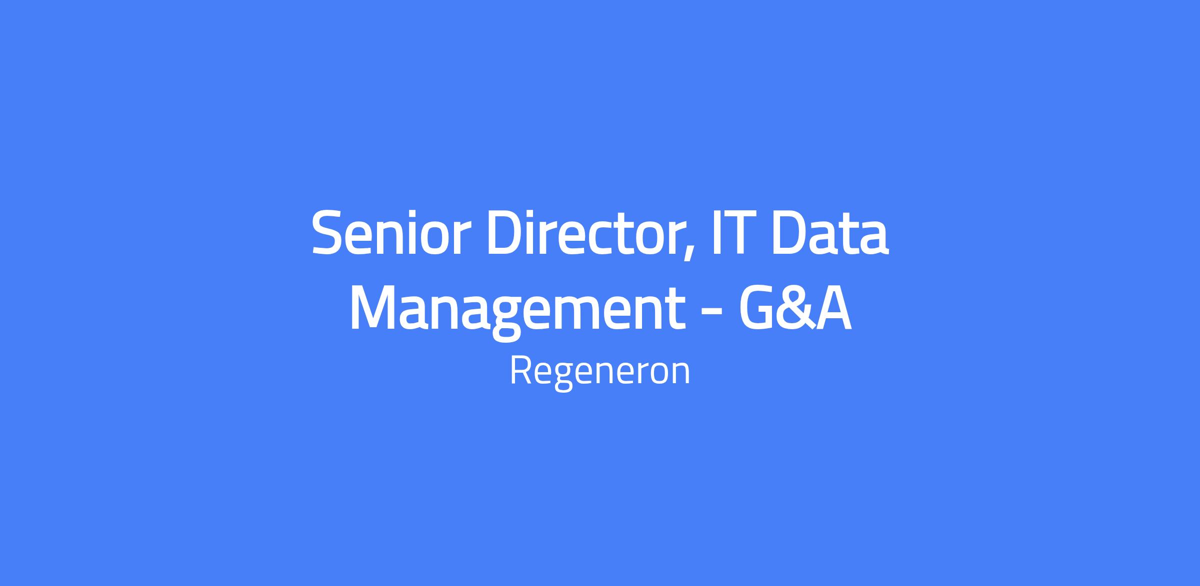 The Senior Director of IT Data Management – G&A is a leadership role based in Sleepy Hollow, NY or Warren, NJ. This position leads the data aspects of IT platforms and services for G&A Data Management (MDM), Data Integration, Reporting, BI, and ERP/HCM technologies—including Oracle and Workday. It is a business-oriented, strategic IT role that enables G&A teams to make informed decisions, improving relationships with customers, payers, and patients, and providing a competitive advantage for Regeneron.