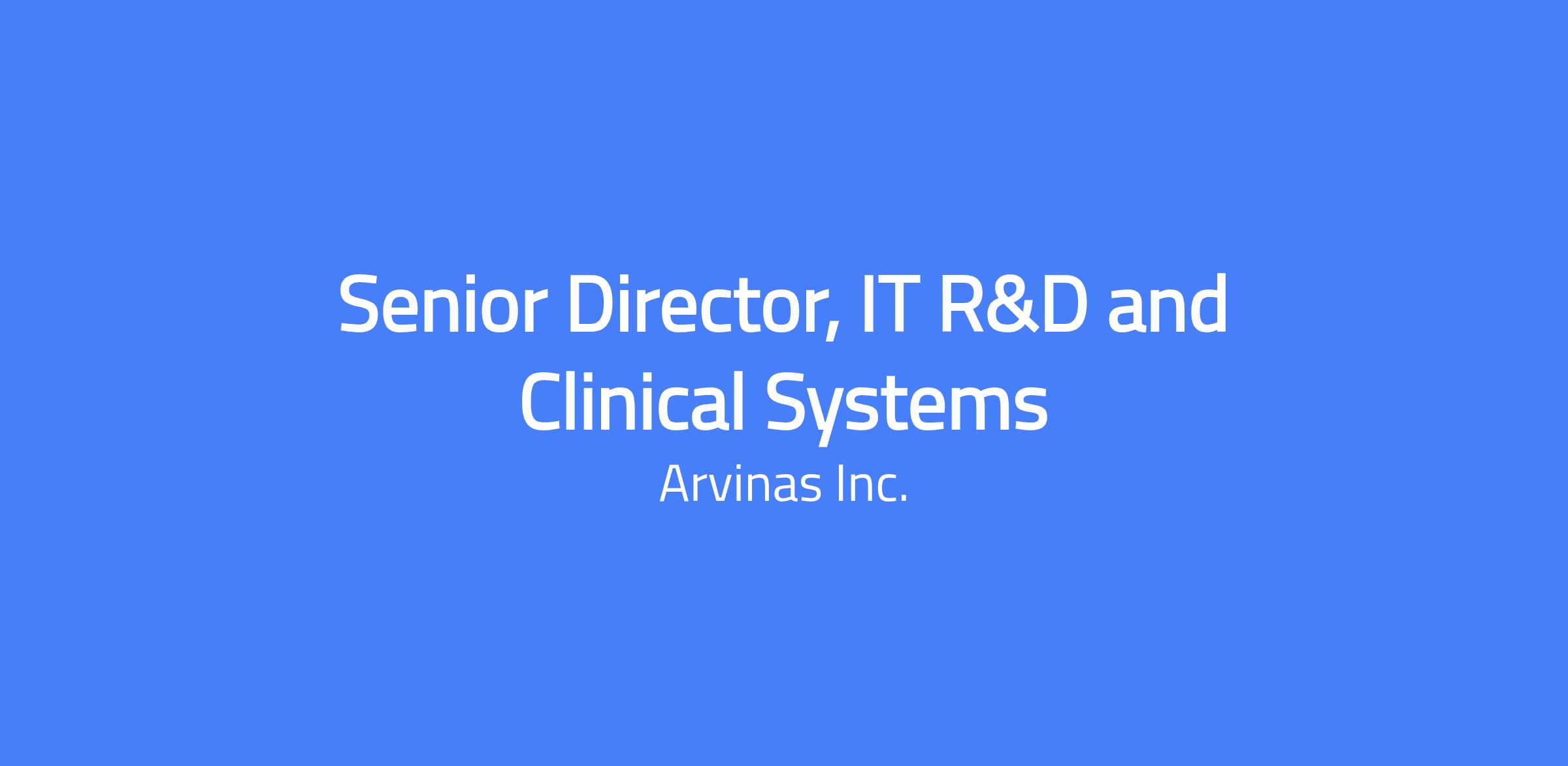 The Senior Director, IT R&D and Clinical Systems serves as the strategic IT business partner for the R&D and Clinical organizations, supporting early drug discovery through clinical development. This role is accountable for shaping and executing the R&D and Clinical IT roadmap, translating scientific and clinical objectives into scalable, compliant, cost-effective, and integrated technology capabilities that enable high-quality science and operational excellence. This individual will work closely with Arvinas’ R&D and Clinical team members to gain a deep understanding of the operations and objectives of each team and then develop multi-year IT capability roadmaps.Â