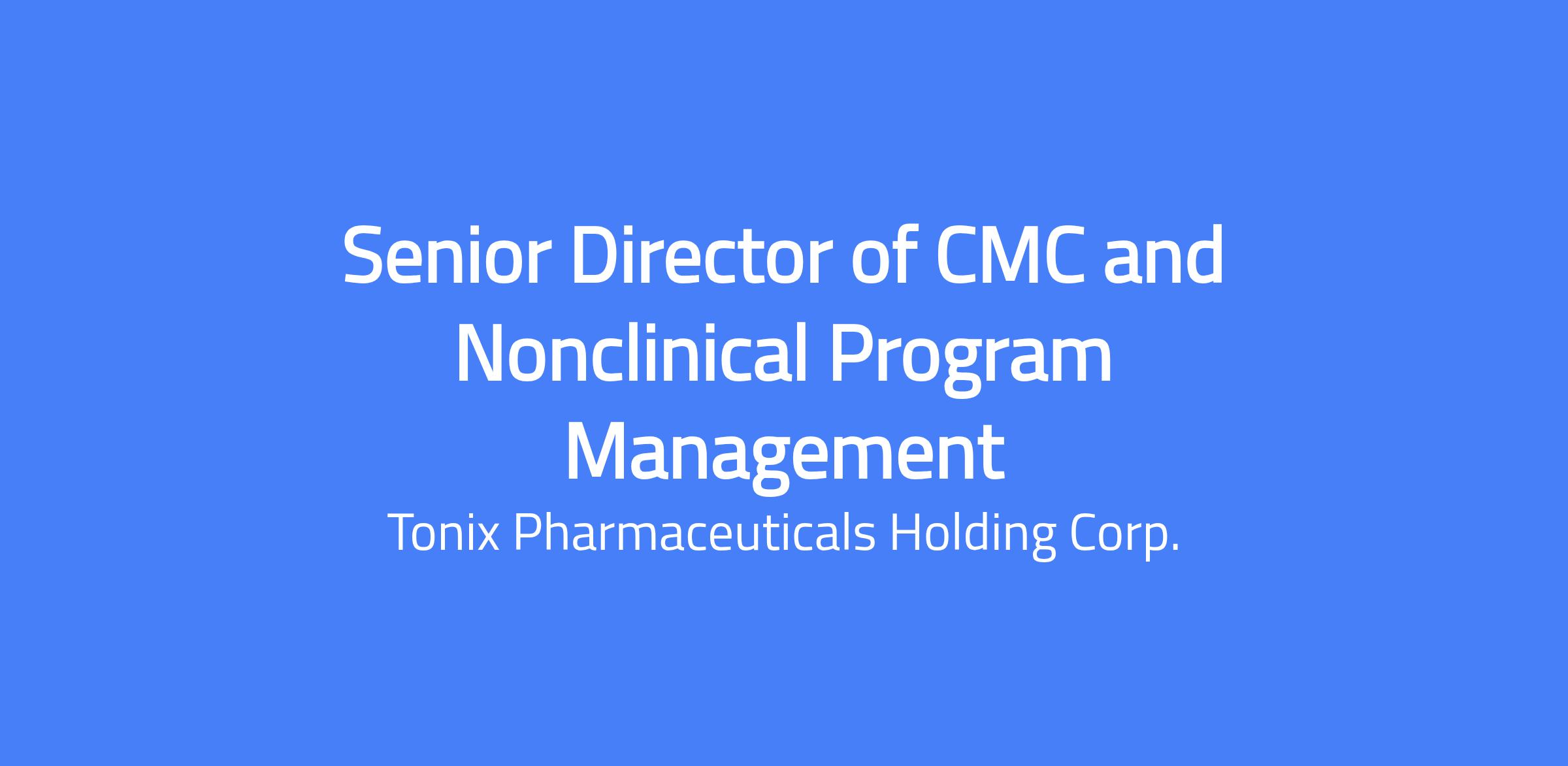 Tonix is seeking a full-time Senior Director of CMC and Nonclinical Program Management to lead the strategic planning and execution of development programs across Chemistry, Manufacturing, and Controls (CMC) and nonclinical functions. This role will play a critical part in driving decision-making across a complex portfolio of drug development programs, ensuring alignment between program strategy, timelines, budgets, and organizational priorities.