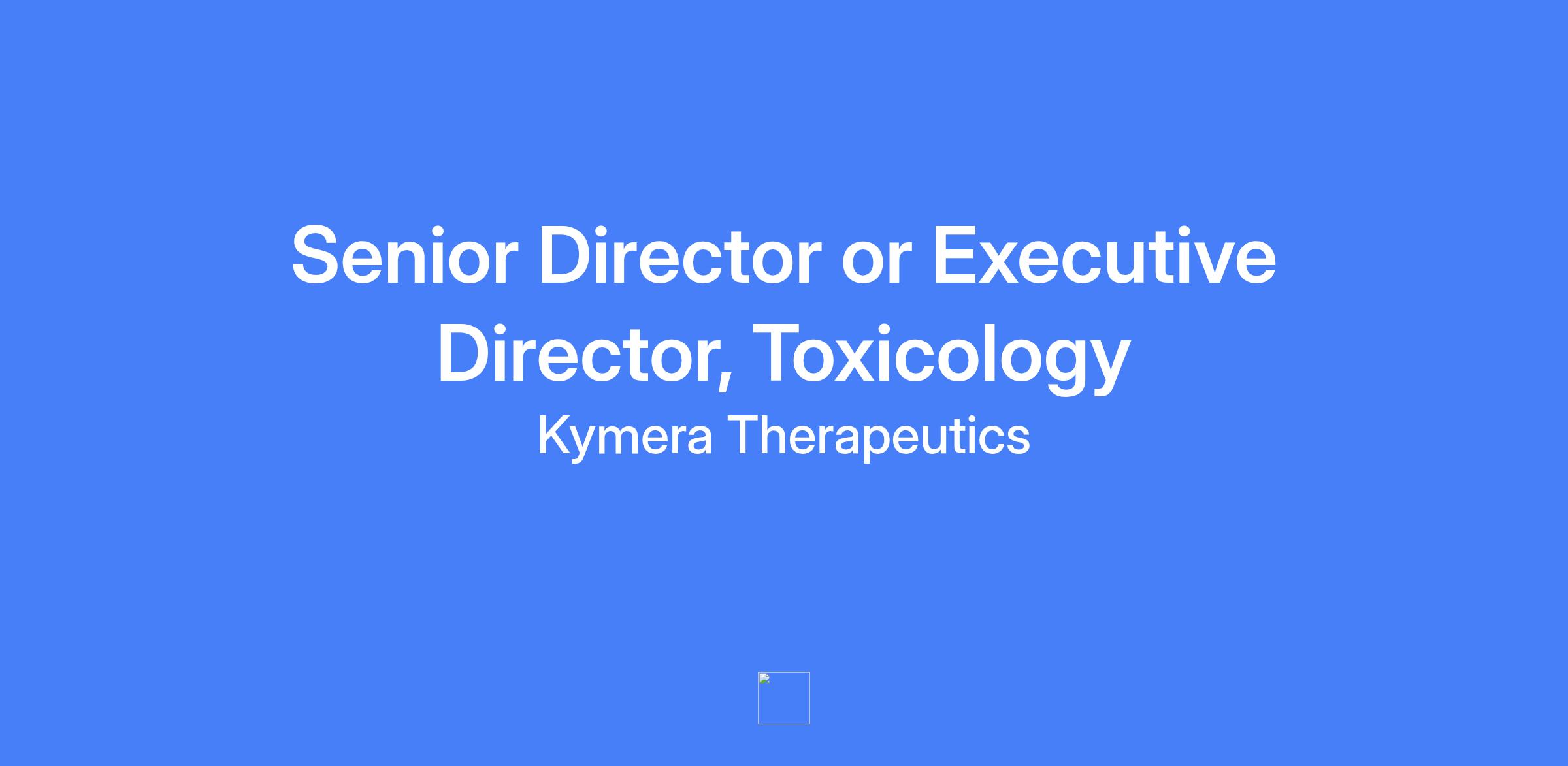 Senior Director or Executive Director, Toxicology at Kymera Therapeutics. Lead nonclinical toxicology and safety pharmacology strategy and execution across discovery to clinical development, supporting small molecule degrader programs and providing expert safety oversight and regulatory collaboration.