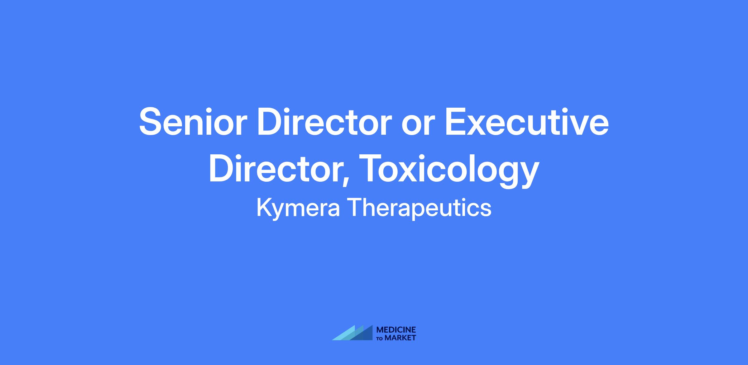 Senior Director or Executive Director, Toxicology at Kymera Therapeutics. Lead nonclinical toxicology and safety pharmacology strategy and execution across discovery to clinical development, supporting small molecule degrader programs and providing expert safety oversight and regulatory collaboration.