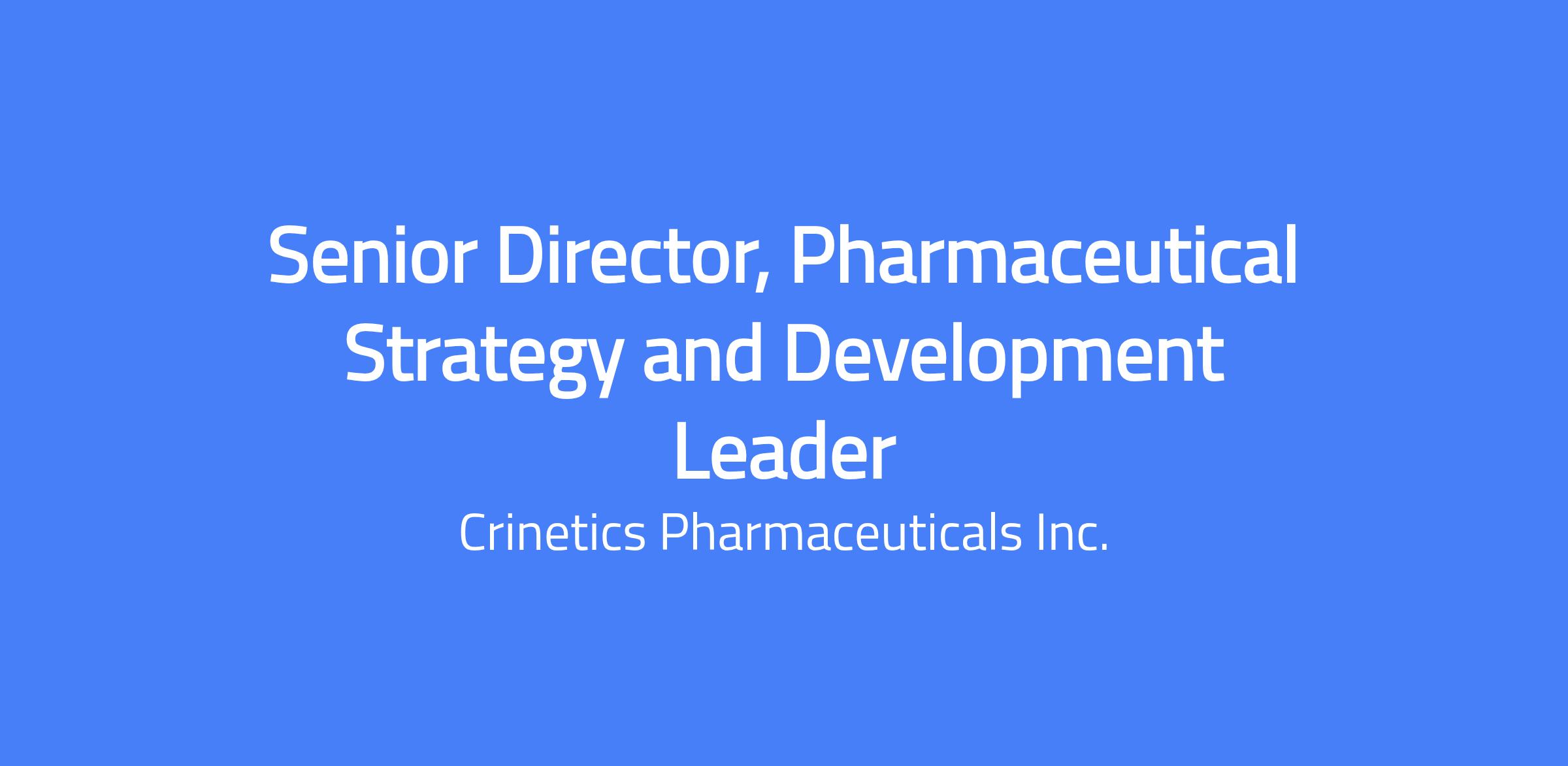 Crinetics is a pharmaceutical company based in San Diego, California that develops much-needed therapies for people with rare endocrine diseases. We were founded by a dedicated team of scientists with the simple belief that better therapies developed from rigorous innovation can lead to better lives. Our work continues to make a real difference in the lives of patients. We have a prolific discovery engine and robust pipeline across preclinical and clinical development. We are driven by science with a patient-centric and team-oriented culture. This is an exciting time to join Crinetics as we shape our organization into the world’s premier fully integrated endocrine company from discovery to patients. Come join our team as we transform the lives of others. Position Summary: The Senior Director, Pharmaceutical Development Team Leader (PDTL) is responsible for developing and leading the execution of comprehensive, compound-specific Technical Operations strategies to meet the global project team's (GPT) needs. This role provides leadership to interdisciplinary teams, managing multiple assets through various stages of development, and collaborates with various functional areas to achieve optimal development and business results. Essential Job Functions and Responsibilities: These may include but are not limited to: Develop, refine, update, and oversee Technical Operations project plans from multiple inputs, with emphasis on the alignment of these plans with strategic objectives, the decomposition of major objectives into discrete WBS-level work packages, the mapping of internal and cross-functional interdependencies, and the management of project risks. Perform detailed scenario planning where significant ambiguity is present and map out the scope, cost, timeline, and risk aspects of each scenario. Provide leadership to interdisciplinary matrix teams responsible for developing and executing compound-specific integrated Technical Operations strategies. Manage multiple assets from candidate nomination to commercial formulation and manufacturing processes. Represent the Technical Operations organization on GPTs and collaborate with Clinical, Commercial, Regulatory, and other functional areas to integrate Technical Operations plans/activities into GPT goals and objectives. Communicate and partner effectively with stakeholders to define and execute Technical Operations strategy for projects. Identify and escalate key issues and risks, as well as resource allocation needs. Critically review relevant documents, including Technical Operations regulatory submissions and briefing booklets. Promote best practices and lead improvement opportunities. Partner with the Corporate Development to support Due Diligence evaluations. Education and Experience: Required: MSc or PhD in a relevant technical/scientific discipline. 15+ years of CMC experience in all phases of development, including regulatory submission (IND, NDA/MAA, IMPD) experience with a strong track record of success. Broad and sound understanding of process chemistry, drug substance, drug product development, and analytical development. Proven track record in CMC development of clinical stage programs. Experience in multiple modalities is preferred. Solid understanding of CMC integration with Non-Clinical and Clinical development, Quality, Regulatory, and Commercial areas. Demonstrated strong project management experience. Relevant strategic and tactical project leadership experience. Excellent verbal and written communication skills. Experience in leading empowered, highly collaborative matrix teams. Keen sense for value of investment and ability to manage ambiguity. Physical Demands and Work Environment: Physical Activities: On a continuous basis, sit at desk for a long period of time; intermittently answer telephone and write or use a keyboard to communicate through written means. Some walking and lifting up to 25 lbs. may be required. The noise level in the work environment is typically low to moderate. The physical demands described above are representative of those that must be met by an employee to successfully perform the essential functions and responsibilities of this job. Reasonable accommodations may be made to enable individuals with disabilities to perform the essential functions and responsibilities. Laboratory Activities (if applicable): Biology and chemical laboratory environment experience needed. Environmental health and safety requirements also apply. Travel: You may be required to travel for up to 30% of your time. Equal Opportunity Employer: Crinetics is proud to be an Equal Opportunity Employer. We provide equal employment opportunities to all employees and employment applicants without regard to unlawful considerations of sex, sexual orientation, gender (including gender identity and/or expression), pregnancy, race, color, creed, national or ethnic origin, citizenship status, religion or similar philosophical beliefs, disability, marital and civil union status, age, genetic information, veteran status or any personal attribute or characteristic that is protected by applicable local, state or federal laws. Total Compensation: The final salary offered to a successful candidate will be dependent on several factors that may include but are not limited to the type and length of experience and education. Crinetics Pharmaceuticals is a multi-state employer, and this salary range may not reflect positions that work in other states. Your recruiter can share more about the specific salary range during the hiring process. Salary Range The salary range for this position is: $214,000 - $268,000. In addition to your base pay, our total rewards program consists of a discretionary annual target bonus, stock options, ESPP, and 401k match. We also provide top-notch health insurance plans for employees (and their families) to include medical, dental, vision and basic life insurance, 20 days of PTO, 10 paid holidays, and a winter company shu