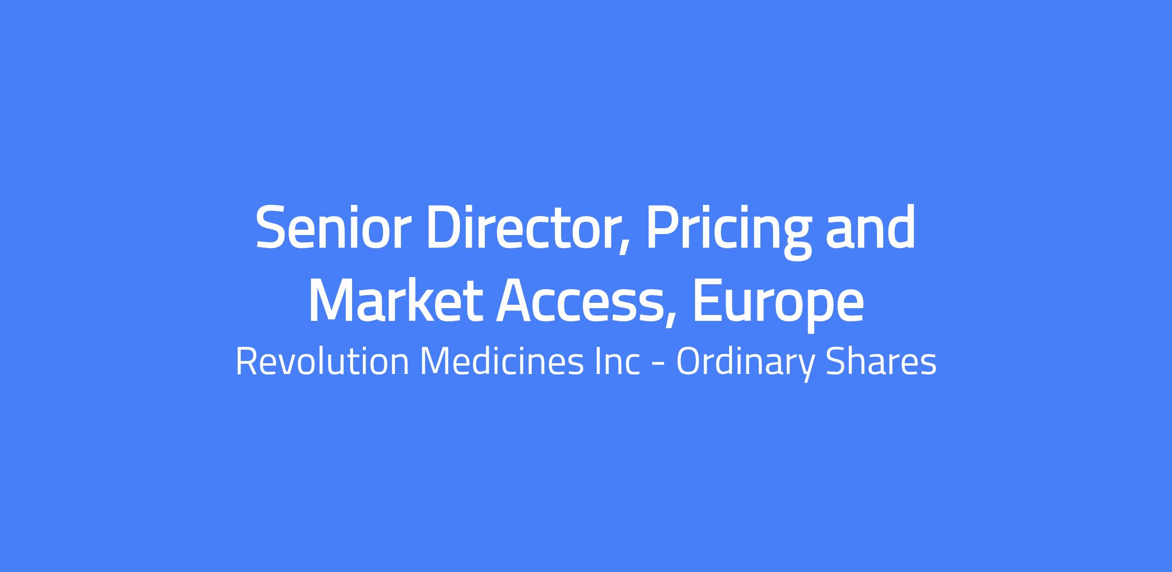 The Senior Director, European Pricing & Market Access serves as the regional pricing leader and European pricing voice for Revolution Medicines. This incumbent will be a senior member of the European Market Access Leadership Team and acts as the dedicated European pricing strategist, providing rapid-response pricing scenario capability at product, indication, and portfolio level to support negotiations, pricing governance, and enterprise strategic planning.