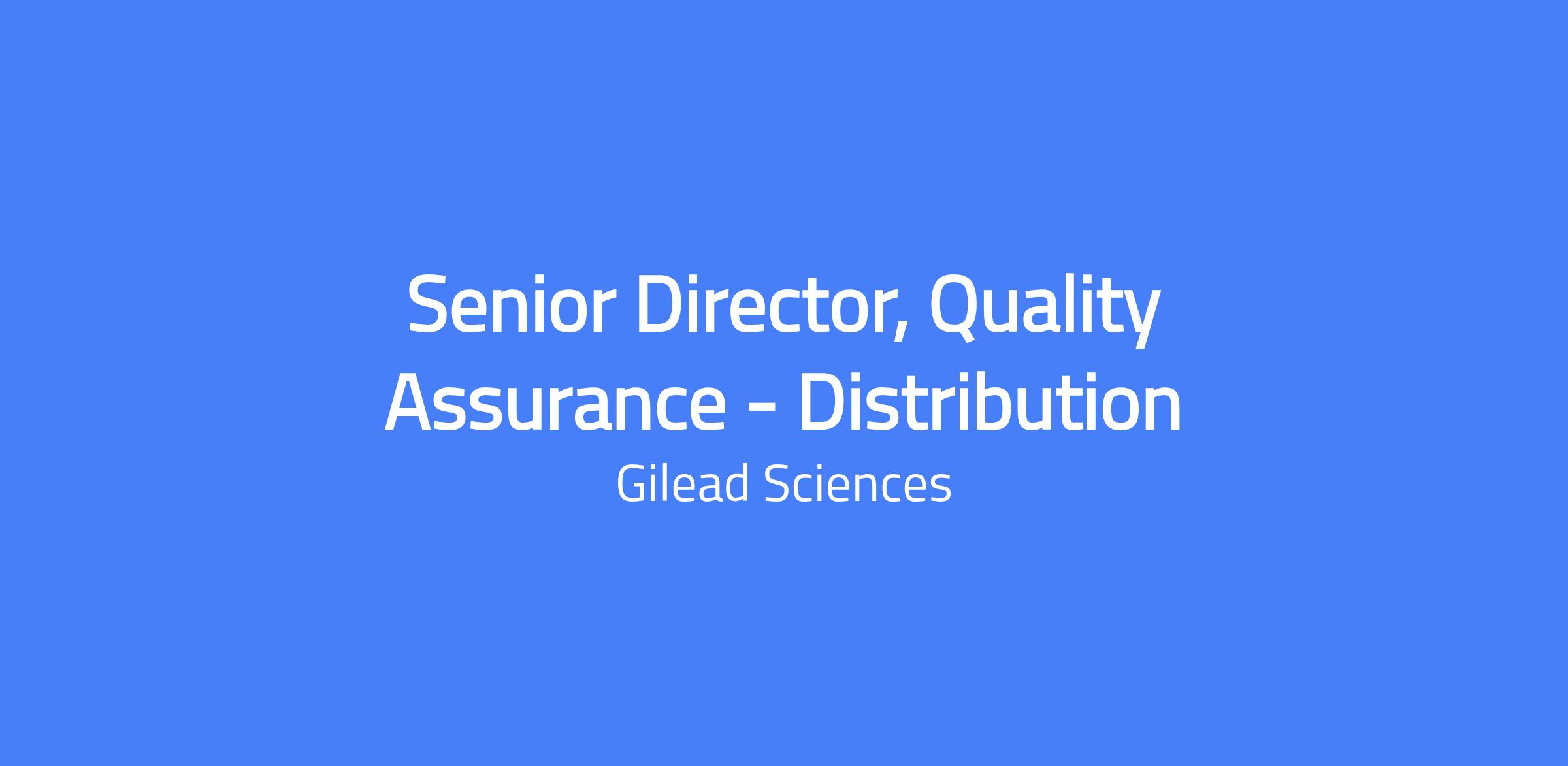 The Senior Director, Quality Assurance - Distribution is accountable for QA operations in US, Canada and LATAM to ensure GMP and GDP compliance for Gilead products. The role develops QA strategies to strengthen and harmonize GDP compliance across the regions and sits on the GPD&A leadership team, contributing to strategy, governance, and operational development of Quality Distribution and QA Operations across markets.