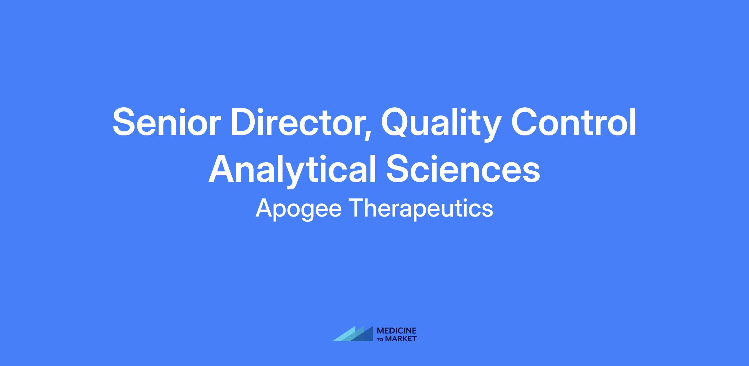 We are seeking a Senior Director, Quality Control (QC) Analytical Sciences, to lead QC Analytical Sciences across Apogee’s pipeline. This individual will be an important leader driving the TechOps and CMC Regulatory strategy, reporting to the VP of Analytical Development and Quality Control.