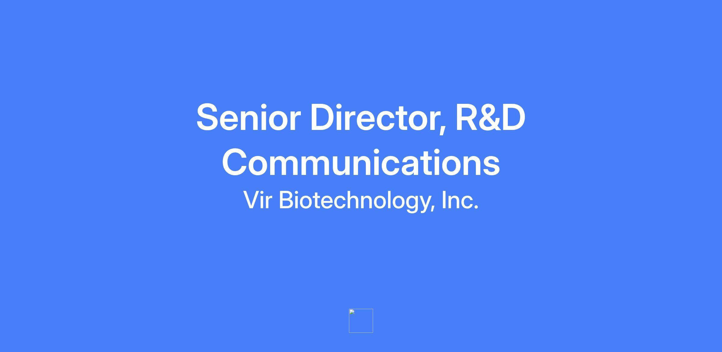 Senior Director, R&D Communications at Vir Biotechnology. Responsible for translating complex scientific information into clear, compelling messages for diverse audiences, establishing scientific thought leadership, and collaborating with patient advocacy and executive leadership to drive communication strategies that elevate Vir Bioβs profile in the biopharma industry. Located in San Francisco with an expectation of at least 3 days per week in office.