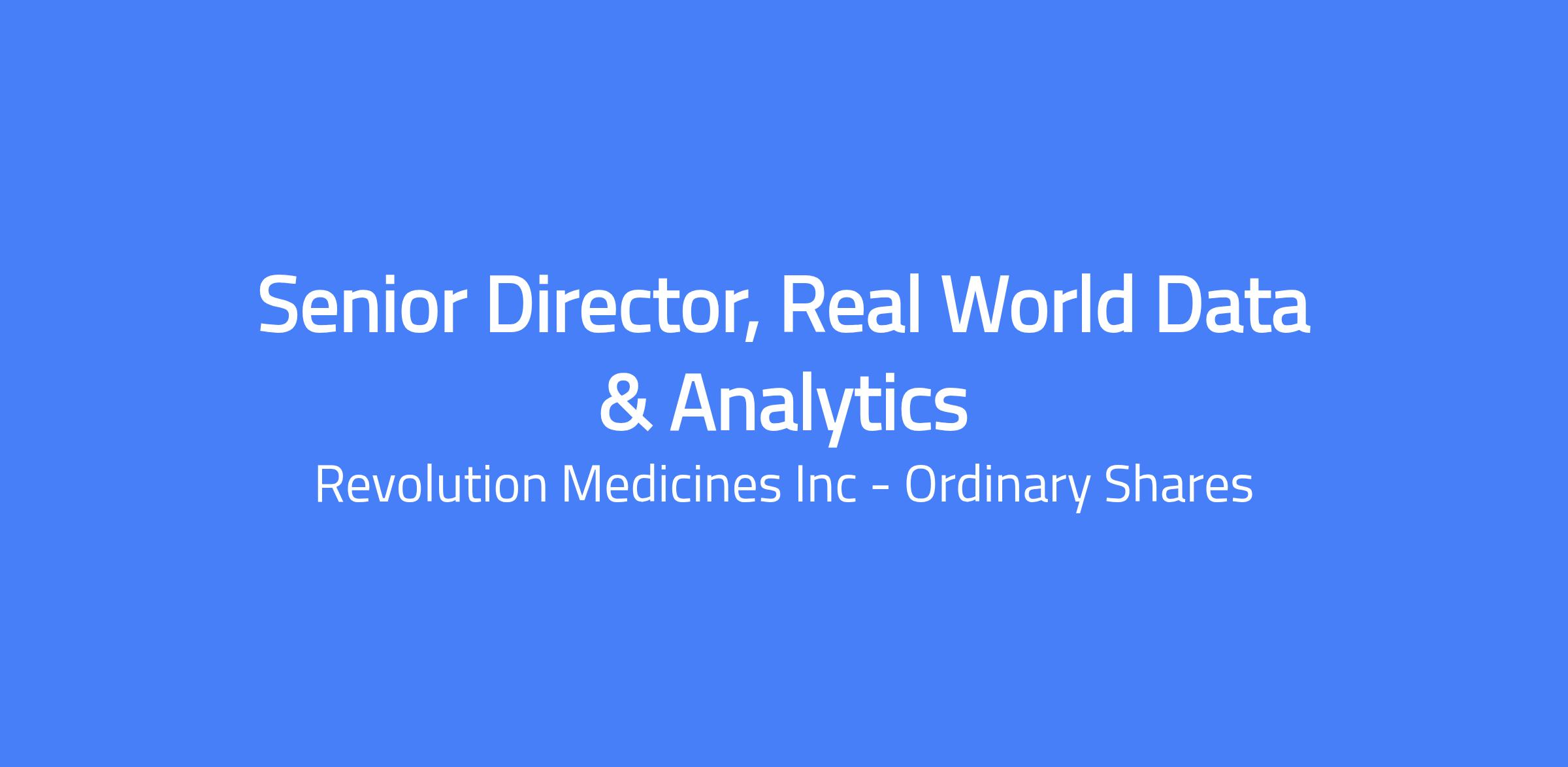 The Senior Director, Real-World Data & Analytics will work with the Executive Director, Head of Epidemiology and VP of HEOR to establish the RWD&A group at RevMed, scaling organizational capabilities and leading the strategy and execution of key RWD&A deliverables for RevMed assets. They will be accountable for working across the clinical development, safety, medical affairs, commercial including analytics and insights, and IT matrix, developing strategies and leading and/or overseeing execution of key projects. Reporting to the Executive Director, Head of Epidemiology & RWD Strategy, they will closely align with the other users of RWD at RevMed, develop ways of working and communication channels to maximize RevMed’s investment in RWD as well as lead the analysis (either directly or leveraging junior team members and vendors) of RWD database and other studies. This is an exceptional opportunity to contribute to the advancement of oncology by leveraging real-world data and analytics that will shape the future of patient care.