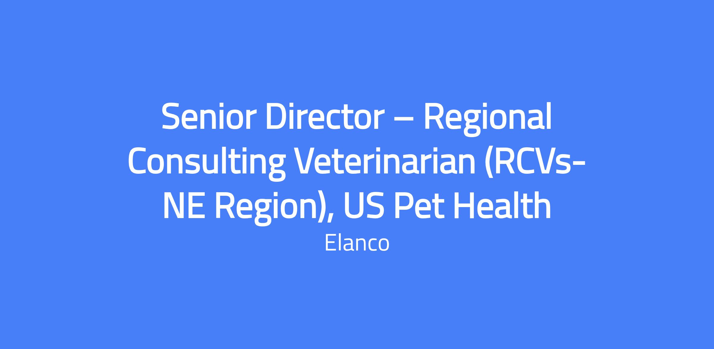 Senior Director – Regional Consulting Veterinarians (RCVs) for the NE region within US Pet Health. Leads and manages the veterinary technical roles for their region, hiring, day-to-day operations, coaching, budgeting, and supporting the strategic direction of US Pet Health. Reports to the Senior Director – Consulting Veterinarians, US Pet Health. Domestic travel is required.