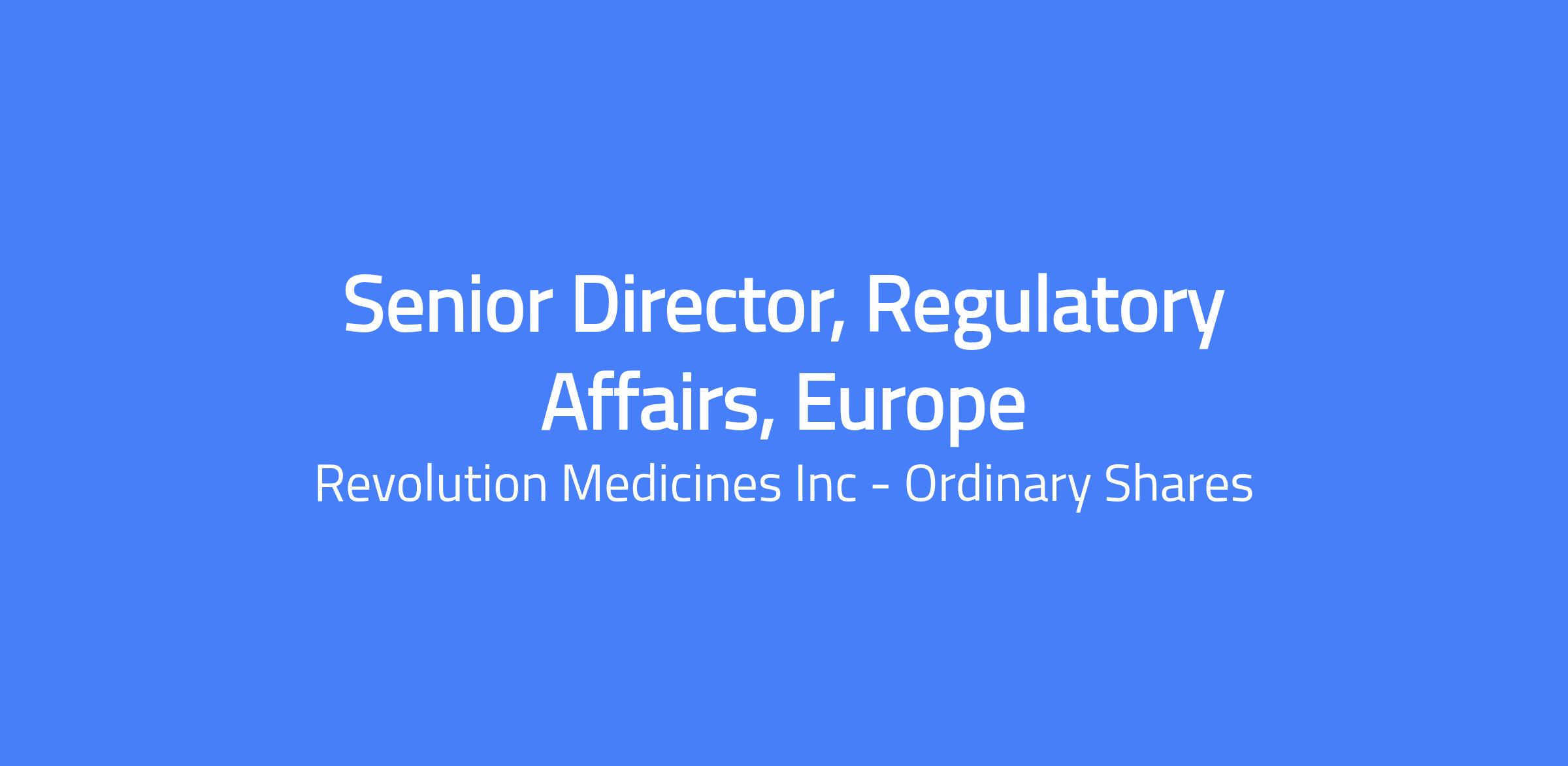 The role will report to the VP, Head of Regulatory Affairs, Europe.