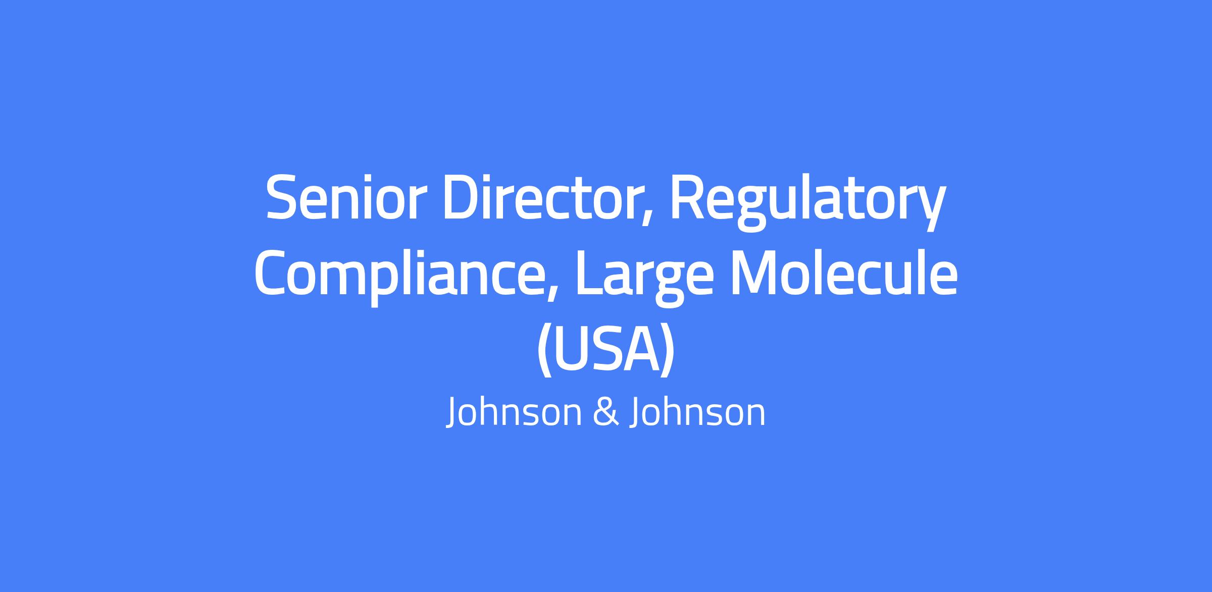 Reporting to the Vice President, Innovative Medicine Regulatory Compliance Leader, this role leads a team of compliance professionals and is part of the IM Compliance Leadership Team. The Senior Director is the GMP compliance leader for Large Molecule Biologics across the Platform and is accountable for inspection readiness, audit programs, supplier/CMO support, and maintaining a robust compliance program. The position partners closely with Quality, CMC/Regulatory Affairs, Manufacturing, Supply Chain, R&D, Clinical and Corporate Compliance to ensure product quality, patient safety, and uninterrupted supply.