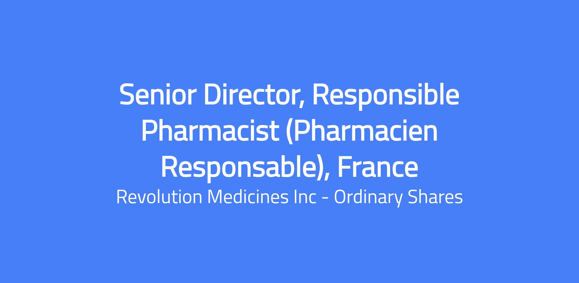 The Senior Director, Head Pharmacist/Responsible Pharmacist guarantees the pharmaceutical responsibility of the laboratory as “exploitant” (see definition of the “exploitant”, Article R.5124-2, 3 ° of the French Public Health Code) and assumes the role of "Responsible Pharmacist" as described in Article R.5124-36 of the Public Health Code. Responsibilities include: