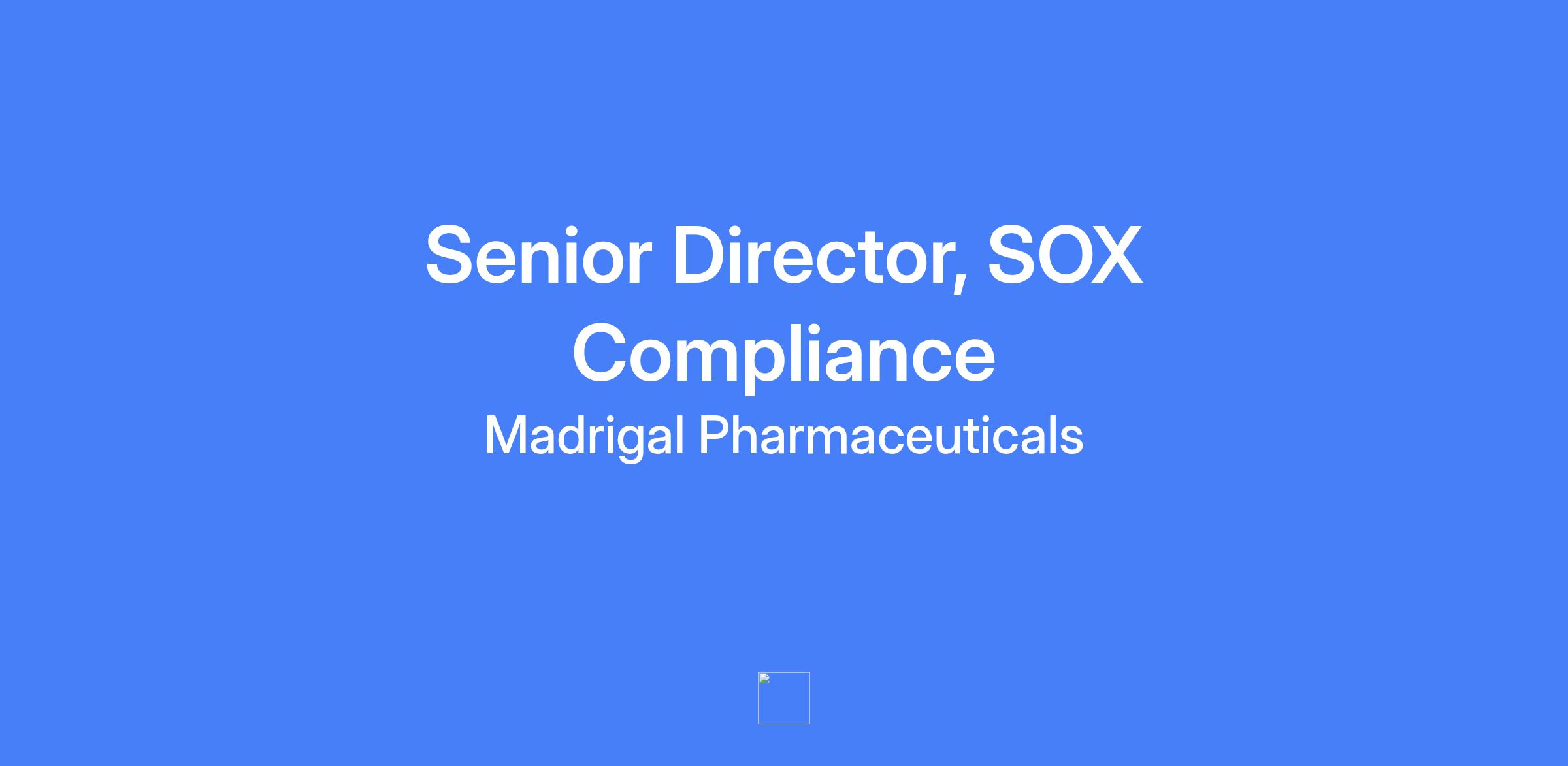 Senior Director, SOX Compliance responsible for leading Madrigal’s enterprise-wide Sarbanes-Oxley (SOX) program, updating the control environment, and supporting global expansion and public company responsibilities. Collaborates across functions to strengthen internal controls, mitigate risk, and ensure SOX 404 compliance while fostering a culture of operational excellence.