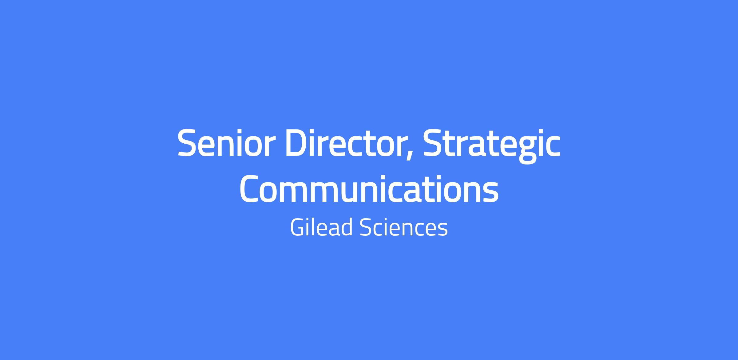 Senior Director, Strategic Communications leads enterprise-wide strategic communications for Gilead's Corporate Communications function, developing and integrating strategies to advance corporate priorities, strengthen reputation, and align external and internal audiences across earned media, internal communications, digital and social platforms, and executive visibility. The role partners with senior leaders and cross-functional teams to translate business strategy into clear, compelling communications and ensure a cohesive, audience-centered narrative across channels. This position reports to the Vice President, Corporate Communications and is based in Foster City, California or Parsippany, New Jersey.