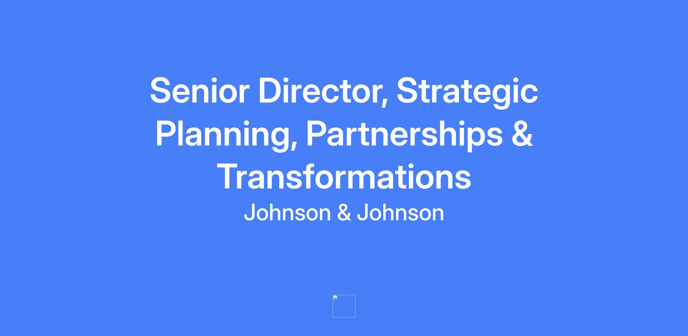 The Senior Director, Strategic Planning, Partnerships & Transformations will lead shaping Global Services’ vision and strategy, drive key business transformations, and partner with leaders to expand and report GS services, capabilities, and opportunities across sectors, functions, and regions. This role is based in New Brunswick, New Jersey and reports to the Global Services VP of Strategy and Transformations. The leader will manage a small team and collaborate across Global Services and JNJ to deliver enterprise-wide impact.