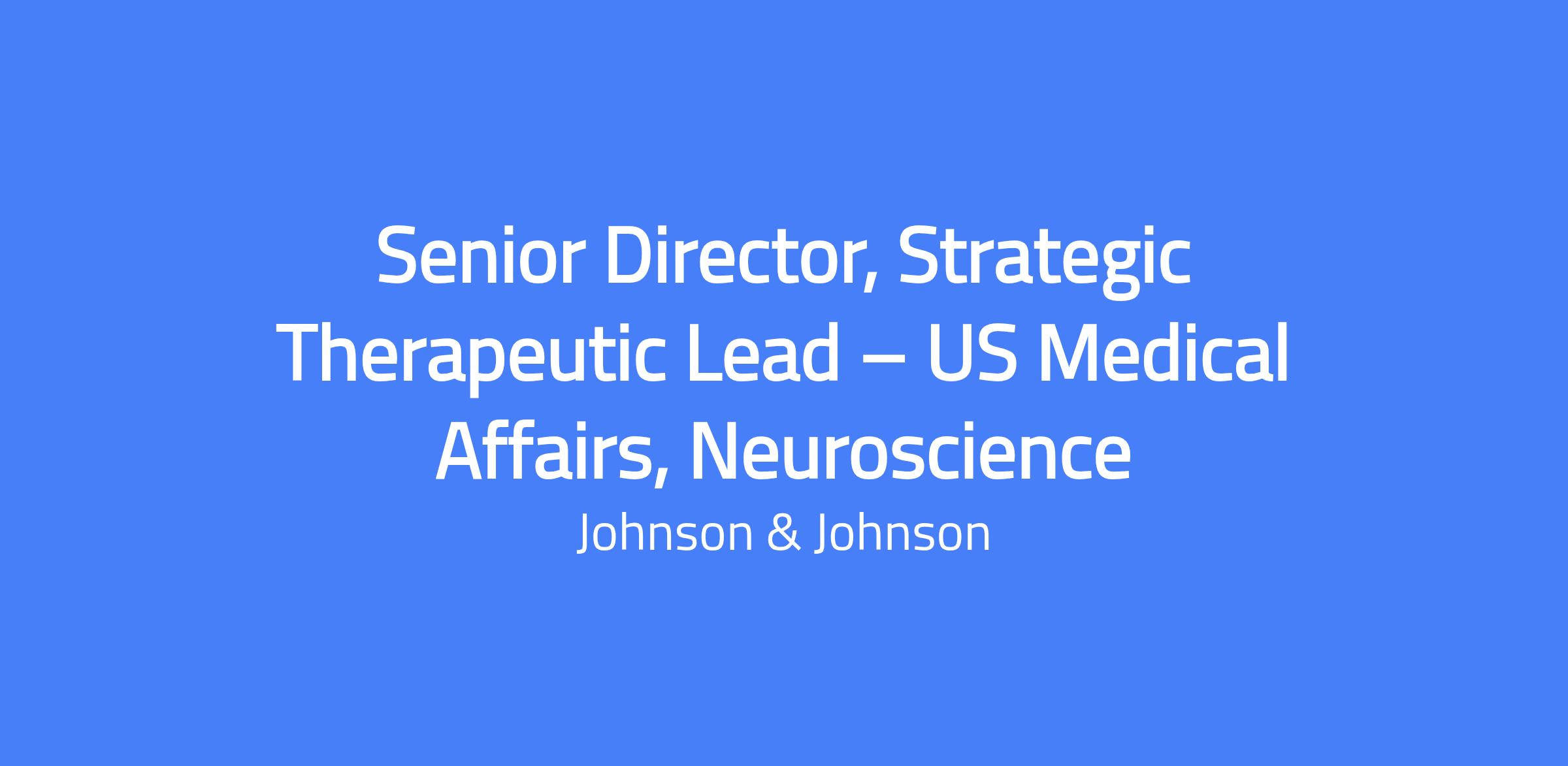 Senior Director, Strategic Therapeutic Lead, US Medical Affairs, Neuroscience. Based in Titusville, NJ, this role defines a forward-looking neuroscience scientific strategy to address unmet medical needs, translating insights into actionable programs, investments, and partnerships. It balances scientific rigor, regulatory compliance, and patient centricity to generate robust plans for data generation, dissemination, and prelaunch initiatives supporting future indications; leads cross-functional collaboration with internal teams and external stakeholders.