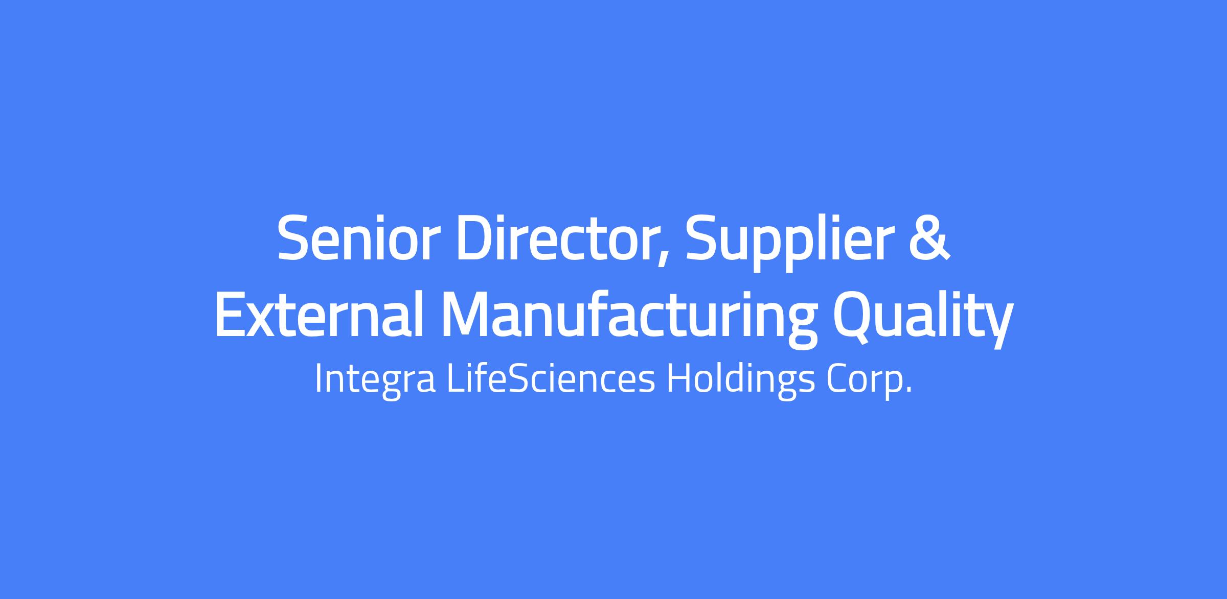 Changing lives. Building Careers. Joining us is a chance to do important work that creates change and shapes the future of healthcare. Thinking differently is what we do best. To us, change equals opportunity. Every day, our colleagues are challenging whatâs possible and making headway to innovate new treatment pathways to advance patient outcomes and set new standards of care. Job Description Summary The Senior Director, Supplier & External Manufacturing Quality is responsible for providing global strategic leadership and governance for supplier quality management and contract manufacturing quality across the enterprise. This role ensures that external manufacturing partners, critical suppliers, and service providers consistently meet regulatory, quality, and business requirements while enabling operational excellence, scalability, and riskâbased decision making. This leader will define and execute a global supplier quality strategy, drive enterpriseâwide standardization, and partner closely with Supply Chain, R&D and Regulatory Affairs to ensure product safety, compliance, and continuity of supply across the product lifecycle. Job Description Global Supplier & Contract Manufacturing Quality Strategy Establish and execute a global strategy for supplier quality and contract manufacturing quality aligned with corporate quality objectives and business growth priorities. Define governance models, performance expectations, and escalation pathways for external manufacturing and supplier quality risk. Serve as the Quality leader for supplier quality management across new product introduction (NPI), lifecycle management, and acquisitions. Lead transformation initiatives to mature supplier quality systems, analytics, and risk management capabilities. Regulatory Compliance & Inspection Readiness Ensure supplier and contract manufacturer compliance with FDA, ISO 13485, EU MDR, MDSAP, and other global regulatory requirements. Act as the quality leader accountable for supplierârelated outcomes during regulatory inspections, notified body audits, and health authority engagements. Oversee supplier audit strategy, qualification, monitoring, and remediation activities, including highârisk and critical suppliers. Drive robust investigation, CAPA, and systemic issue resolution related to supplier and external manufacturing performance. Operational Excellence & Risk Management Implement riskâbased supplier segmentation and performance management frameworks. Lead enterprise programs for supplier change management, process validation, PPAP/FAI, and ongoing supplier process monitoring. Partner with Supply Chain to proactively manage quality, compliance, and continuity of supply risks. Leverage data and analytics to drive predictive insights, trend analysis, and continuous improvement. Leadership & Talent Development Provide leadership to a global organization of senior managers, managers, and subjectâmatter experts across regions and manufacturing models. Set clear priorities, performance expectations, and development plans to build a highâperforming supplier quality organization. Foster a culture of accountability, collaboration, and continuous improvement consistent with enterprise quality values. CrossâFunctional & Engagement Serve as a key advisor to executive leadership on supplier quality risk, external manufacturing strategy, and regulatory exposure. Influence and align senior stakeholders across Quality, Operations, Supply Chain, R&D, Regulatory Represent Supplier & Contract Manufacturing Quality in enterprise quality reviews, management reviews, and boardâlevel discussions, as required. Education & Experience Required Bachelorâs degree in Engineering, Life Sciences, or a related technical discipline. 15+ years of progressive experience in Quality within the medical device or regulated life sciences industry, including significant supplier or external manufacturing oversight. Demonstrated leadership experience managing global, multiâsite organizations and complex external partner networks. Expect 30%+ Travel Preferred Advanced degree (Masterâs). Deep working knowledge of global regulatory frameworks impacting supplier and contract manufacturing quality. Proven success leading enterpriseâlevel transformations, remediation programs, or quality system harmonization initiatives. Key Competencies Executive leadership and influence Global regulatory and supplier quality expertise Riskâbased decision making Strategic thinking and change leadership Strong collaboration across complex matrix organizations Dataâdriven performance management Salary Pay Range: $192,050.00 - $263,350.00 USD Salary Our salary ranges are determined by role, level, and location. Individual pay is determined by several factors including job-related skills, experience, and relevant education or training. In addition to base pay, employees may be eligible for bonus, commission, equity or other variable compensation. Your recruiter can share more about the specific salary range for your preferred location during the hiring process. Additional Description for Pay Transparency: Subject to the terms of their respective plans, employees and/or eligible dependents are eligible to participate in the following Company sponsored employee benefit programs: medical, dental, vision, life insurance, short- and long-term disability, business accident insurance, and group legal insurance, and savings plan (401(k)). Subject to the terms of their respective policies and date of hire, Employees are eligible for the following https://jobs.integralife.com/total-rewards/ Integra LifeSciences is an equal opportunity employer, and is committed to providing equal employment opportunities to all qualified applicants and employees regardless of race, marital status, color, religion, sex, age, national origin, sexual orientation, physical or mental disability, or protected veteran status. This site is governed solely by applicable U.S. laws and go