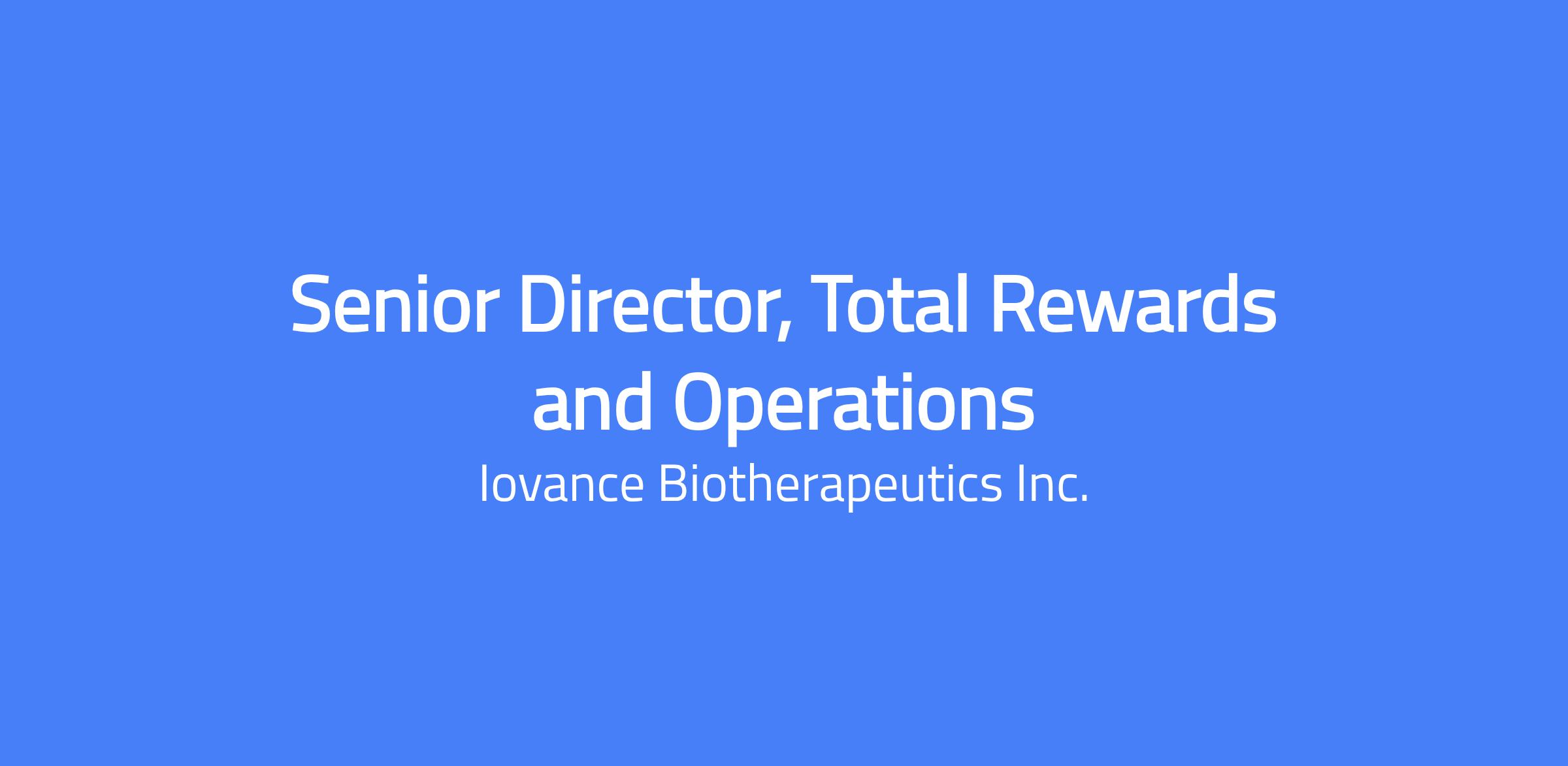 Iovance is seeking a Sr. Director, Total Rewards and Operations for leading the global total rewards and HR operations function. Reporting directly to the Executive Vice President of Human Resources (EVP HR), will be responsible for innovating, developing, directing and administering Iovance’s total rewards programs encompassing all compensation and benefits programs Ensures our rewards philosophy is competitive, equitable, compliant, and aligned with the company's business strategy, mission, and values, supporting talent attraction and retention globally. Overseeing HRIS and HR Operations administration, driving all HRIS initiatives and with deep collaboration with HR business partners the focus of this position is to optimize and execute the delivery of total rewards programs and services to the business.