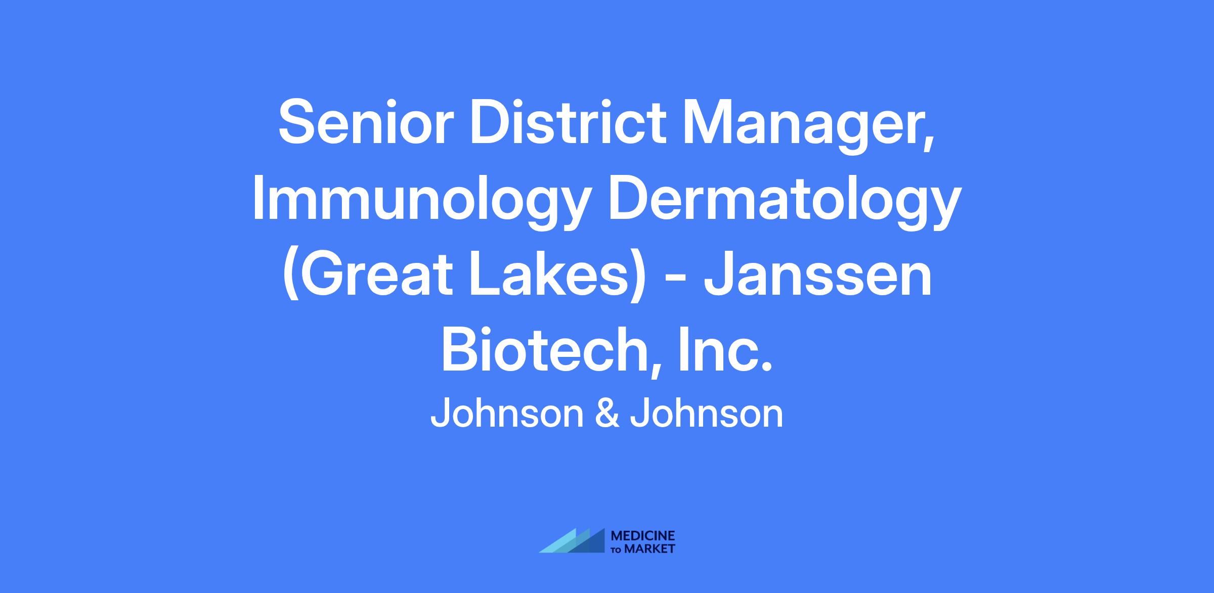 Senior District Manager, Immunology Dermatology, to support the Great Lakes district (Detroit, Lansing, Ann Arbor, Flint, MI & Rochester, MN) within Janssen Biotech, Inc.