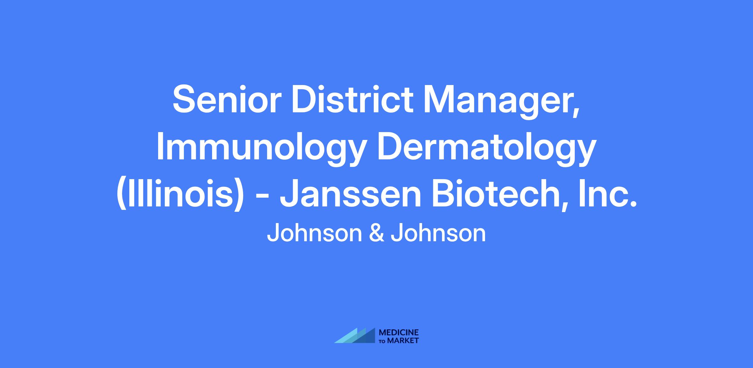 Senior District Manager, Immunology Dermatology, to support the Illinois district (Chicago & Rockford, IL; Milwaukee, Madison & Kenosha, WI). Lead and develop the Dermatology sales team within Janssen Biotech, Inc. portfolio, shape strategic business direction, manage budget, and drive region-wide sales objectives.