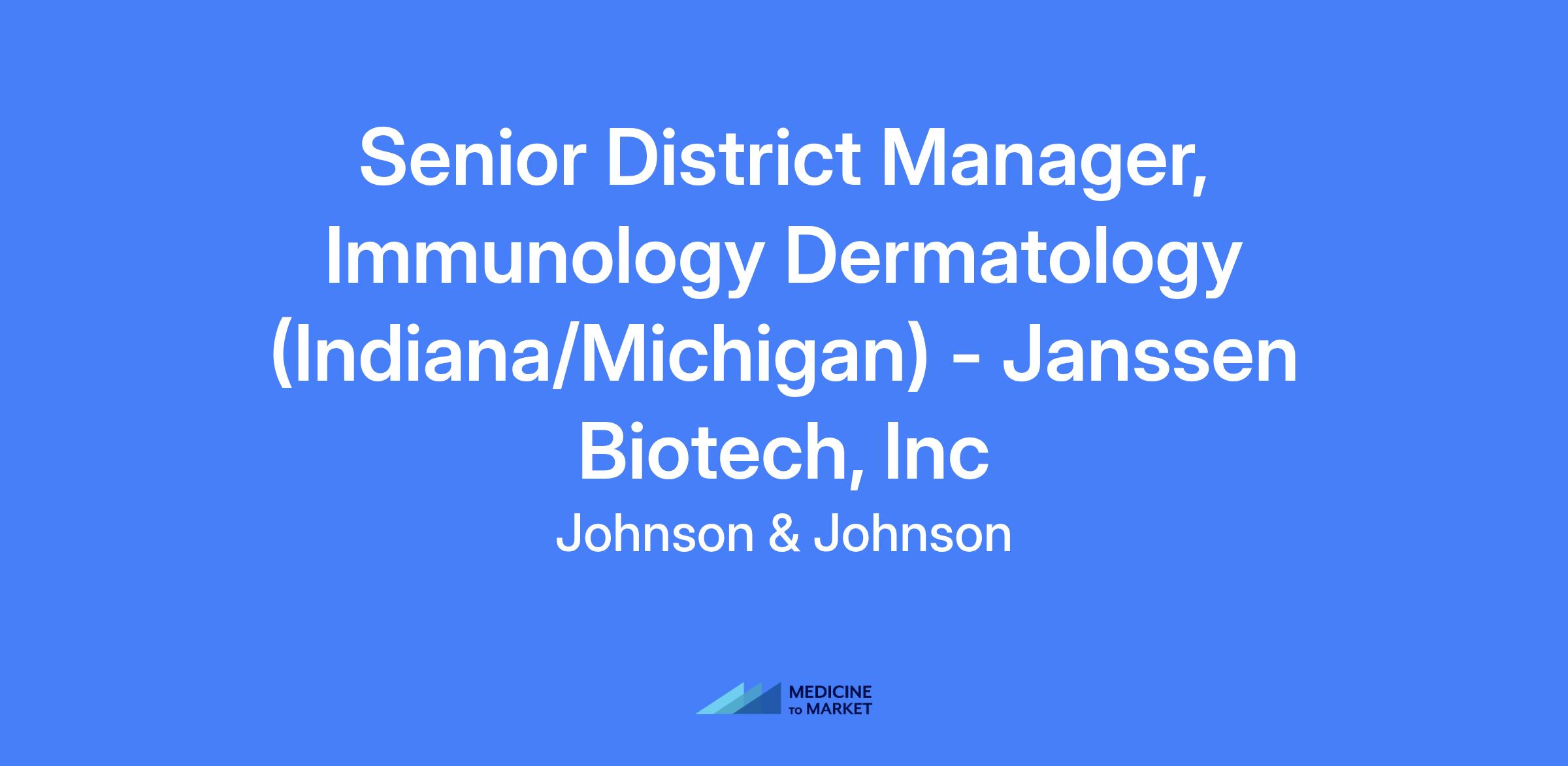 Senior District Manager, Immunology Dermatology, to support the Indiana/Michigan district (Grand Rapids, Kalamazoo & South Bend, MI and Indianapolis & Lafayette, IN).