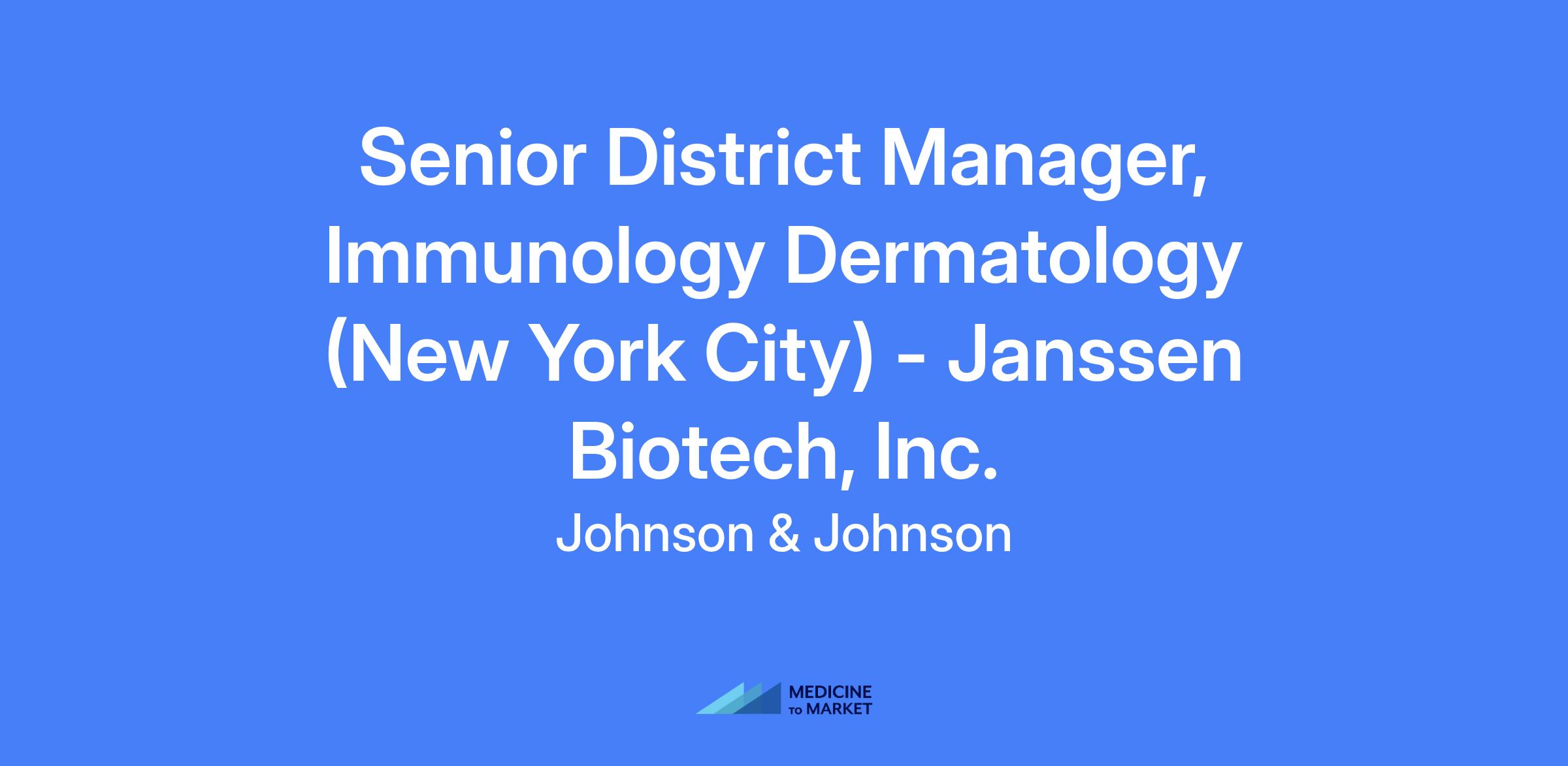 Senior District Manager, Immunology Dermatology responsible for leading a district in New York City, guiding dermatology product sales, and developing teams to achieve sales objectives within the Janssen Biotech portfolio.