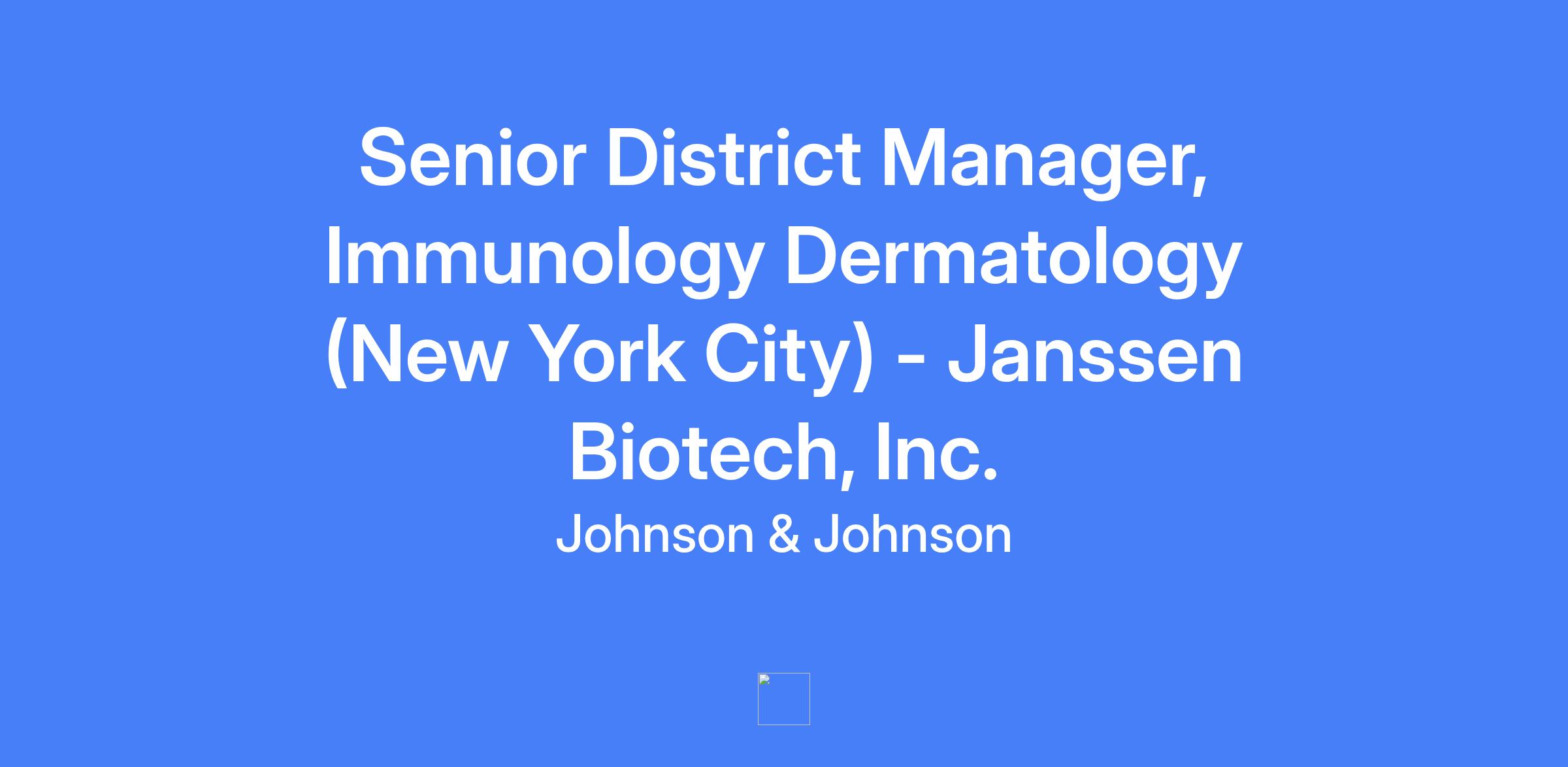 Senior District Manager, Immunology Dermatology, to support the New York City district within Janssen Biotech, Inc. This role leads a team focused on achieving dermatology sales objectives, shapes business strategy within budget, and builds strong customer relationships while championing patients and advancing immunology/dermatology therapeutic areas.