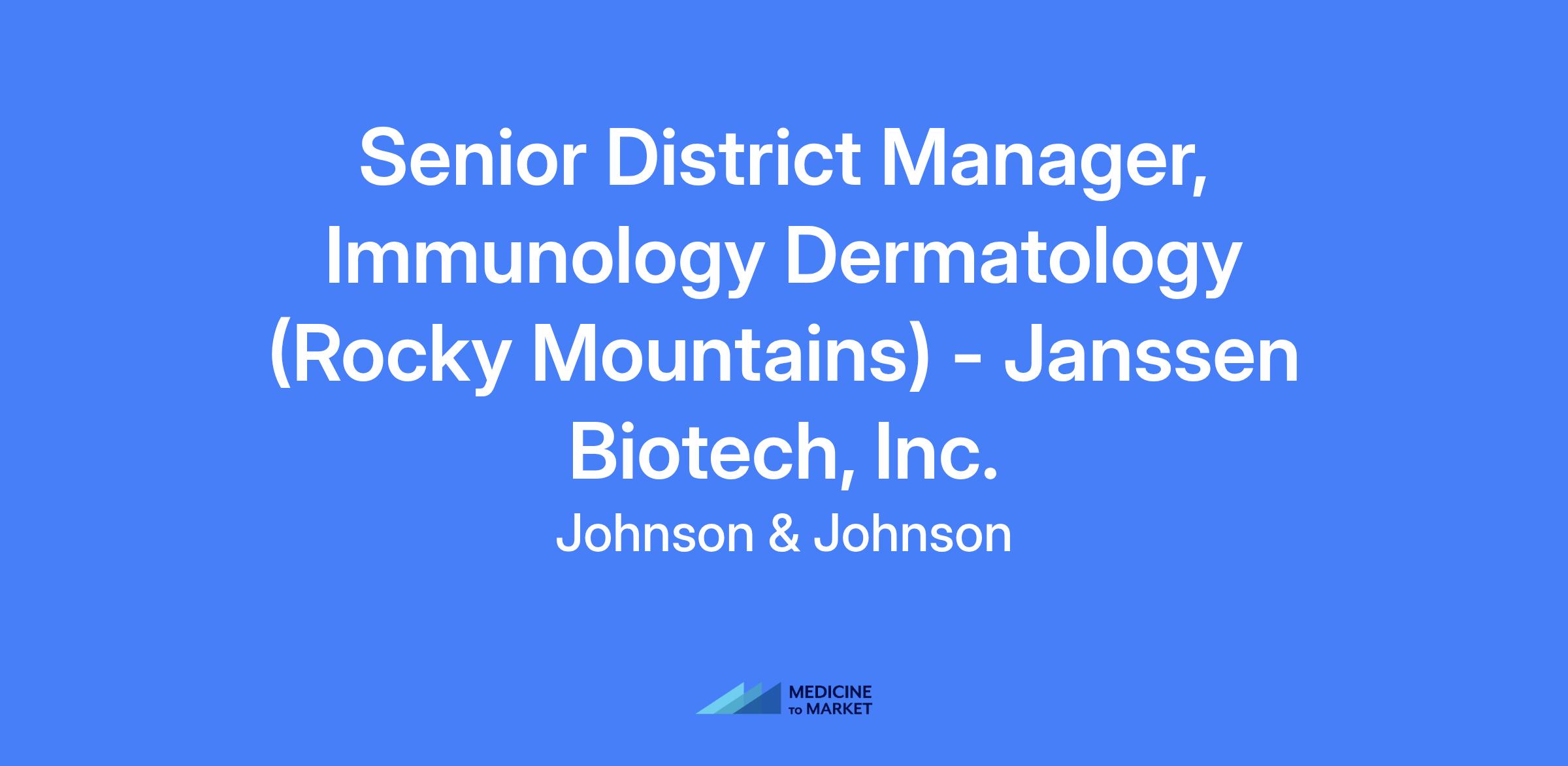 Senior District Manager, Immunology Dermatology (Rocky Mountains) responsible for leading and developing a sales team across the Rocky Mountains region to achieve dermatology product objectives within Janssen Biotech, Inc. portfolio. Drive regional strategy, performance, and key customer relationships to advance immunology/dermatology medicine impact.