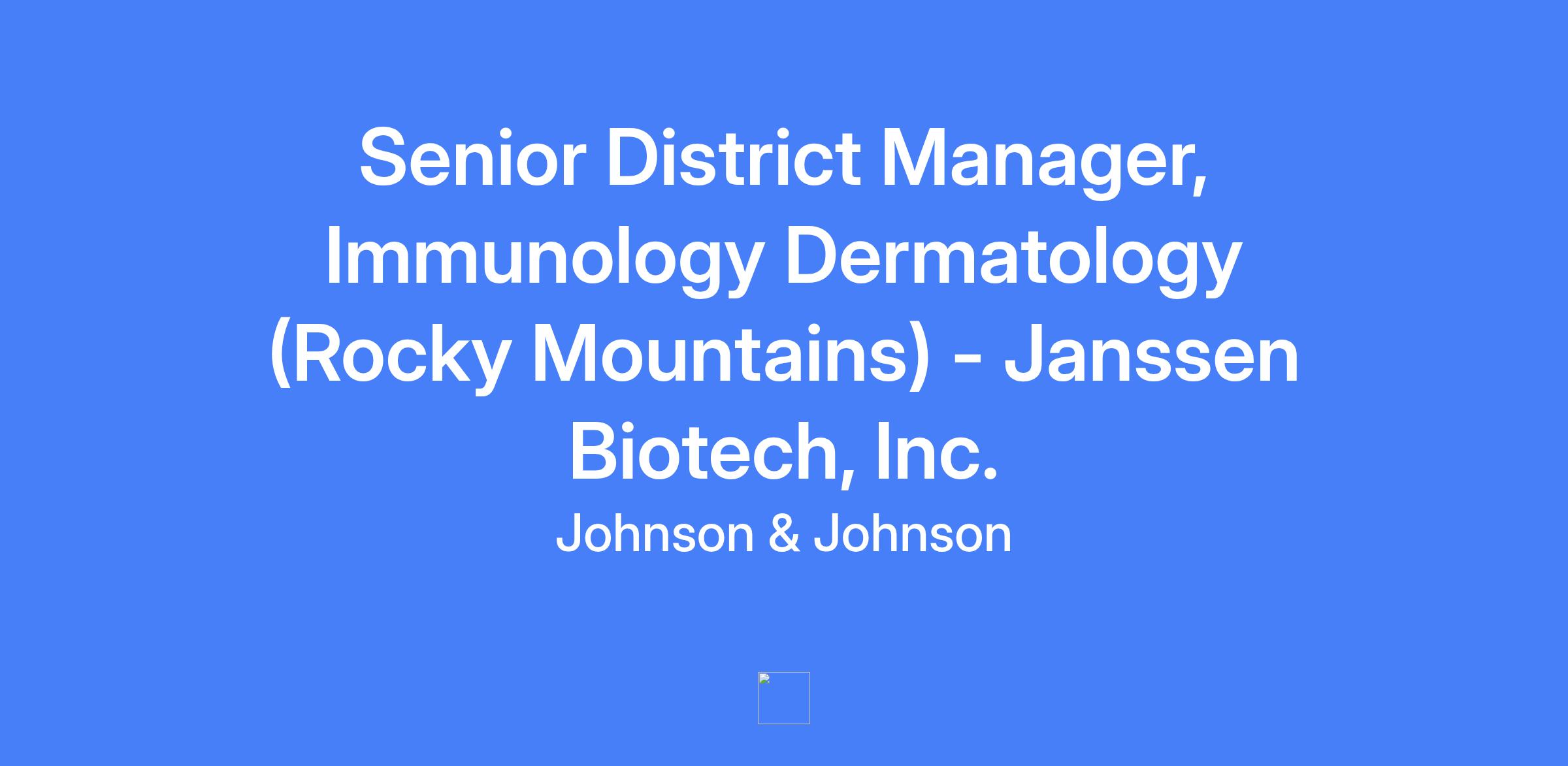 Senior District Manager, Immunology Dermatology, to support the Rocky Mountains district including Denver, Colorado Springs, Albuquerque, Salt Lake City, Aurora, Boise, Littleton, Boulder and Ogden. The role oversees Dermatology products within Janssen Biotech, Inc. portfolio, leading a team toward sales objectives and shaping regional strategy within budget. The position involves collaborating with partners, developing and motivating teams, and building strong customer relationships to drive sales performance.