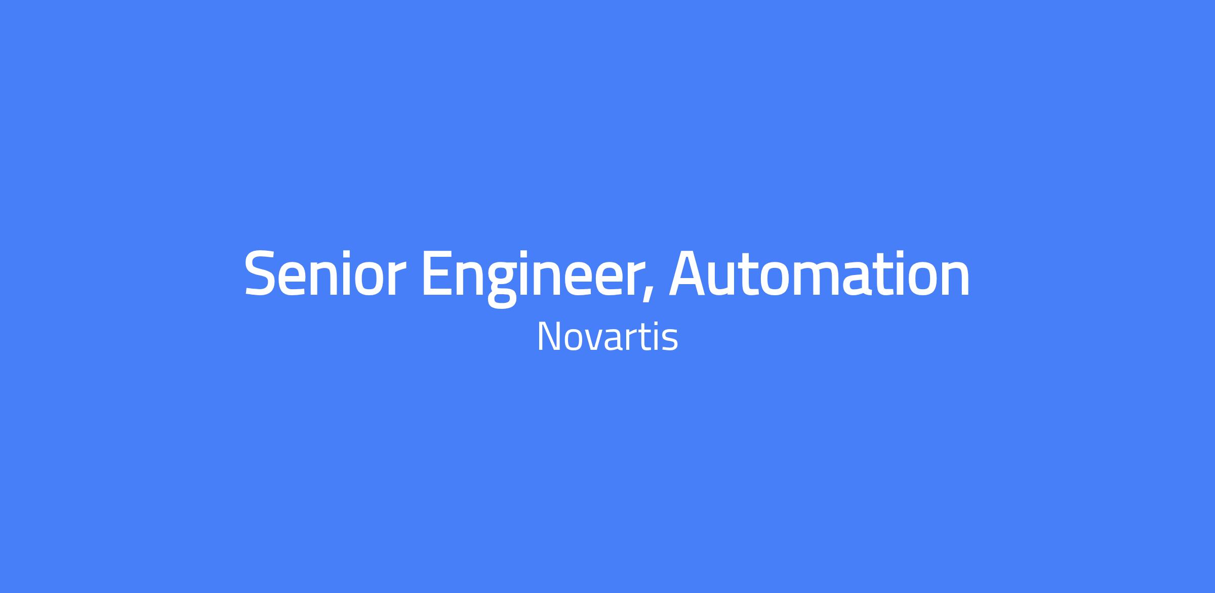 The Senior Automation Engineer reports to the AD Process Automation and is responsible for providing automation design team leadership and serving as a technical subject matter expert for a Novartis Aseptic Drug Product facility. Location: Durham, NC; On-site role. Relocation assistance is not offered for this role.