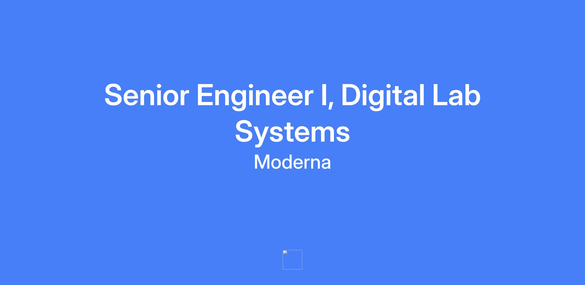 Senior Engineer I, Digital Lab Systems at Moderna. The role supports the delivery and administration of laboratory systems, assists in configuration and deployment, and participates in generating and maintaining procedures. Activity includes authoring and executing test protocols.