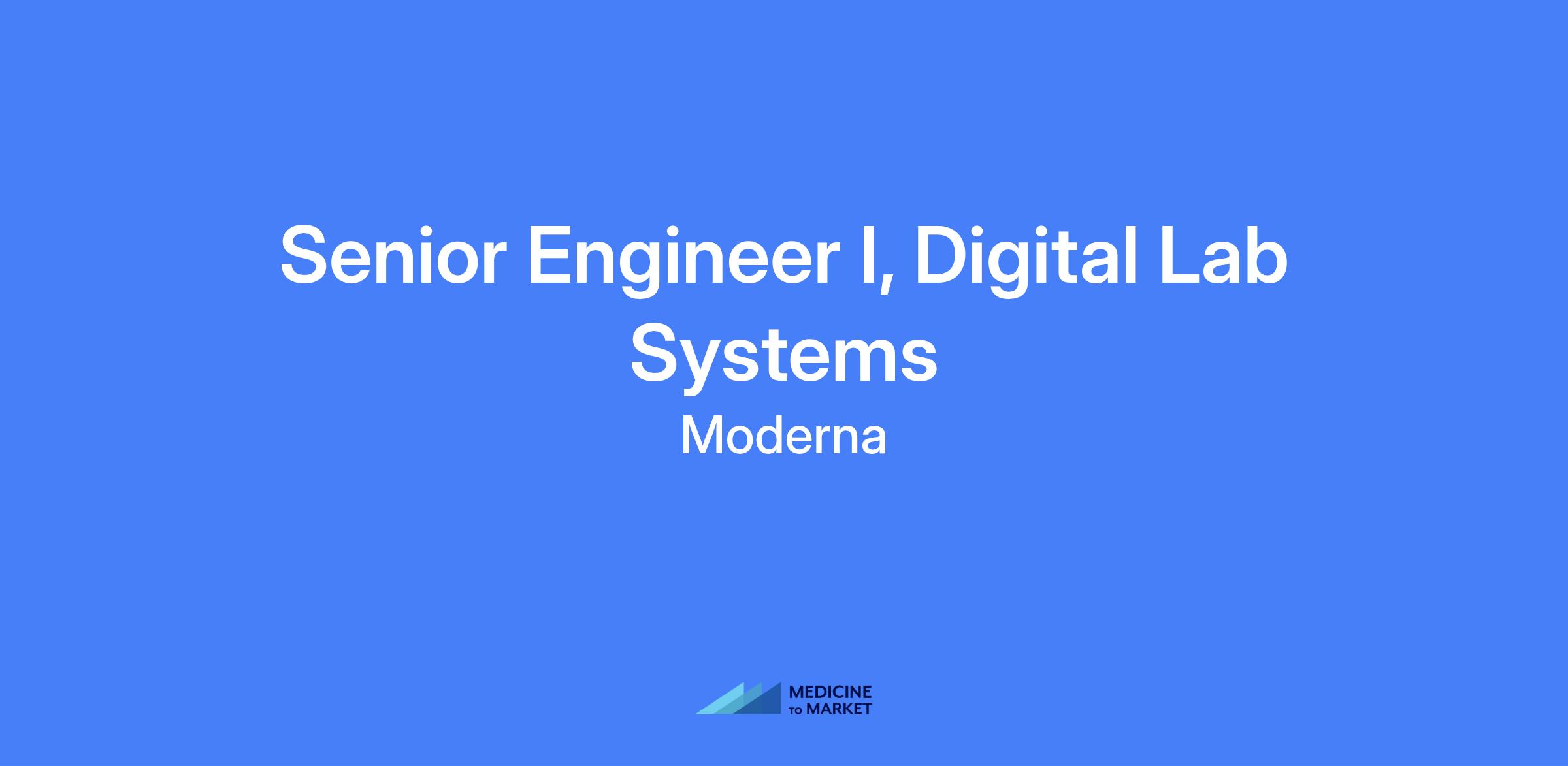 Senior Engineer I, Digital Lab Systems at Moderna. The role supports the delivery and administration of laboratory systems, assists in configuration and deployment, and participates in generating and maintaining procedures. Activity includes authoring and executing test protocols.