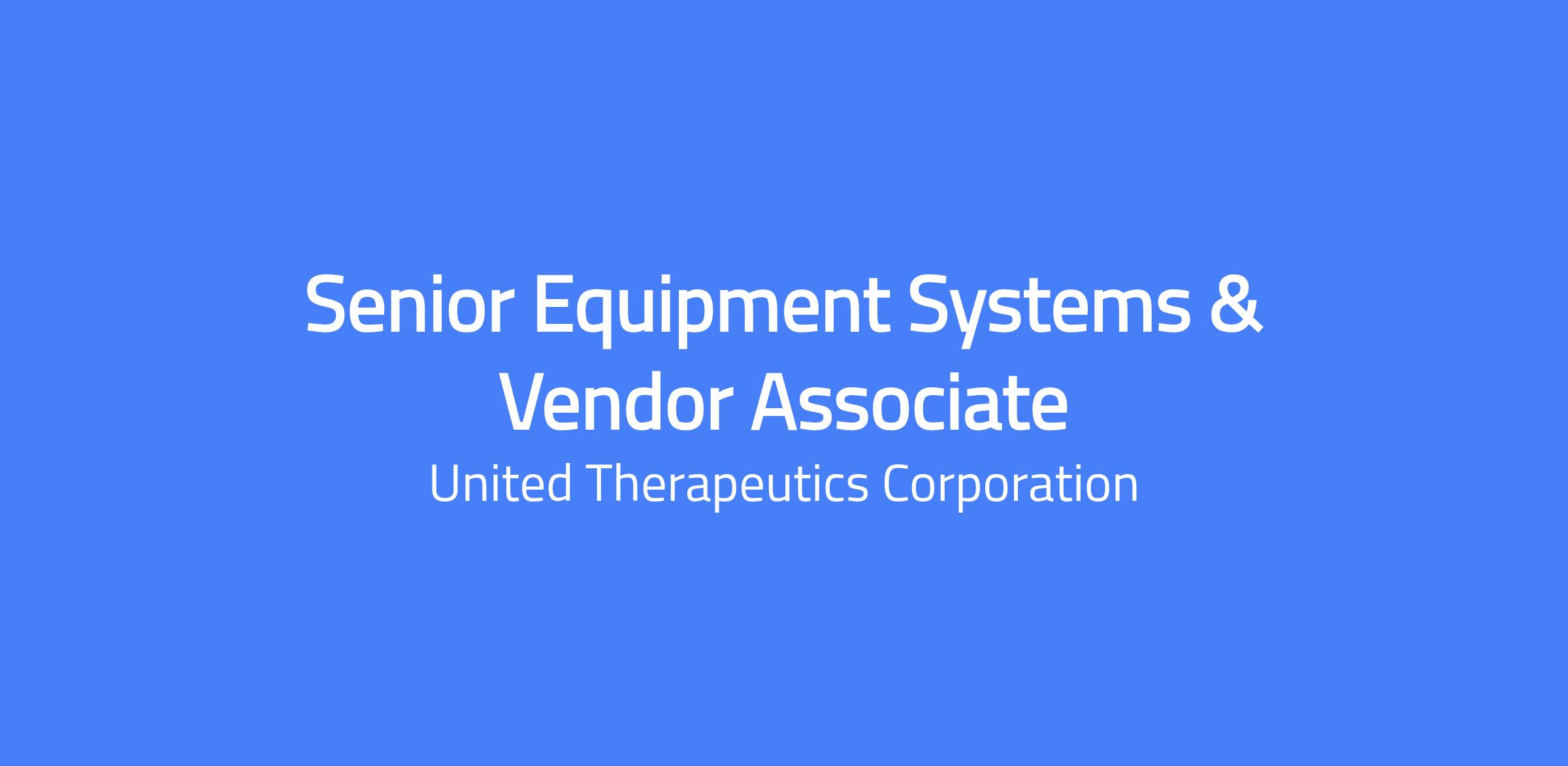 Senior Equipment Systems & Vendor Associate
