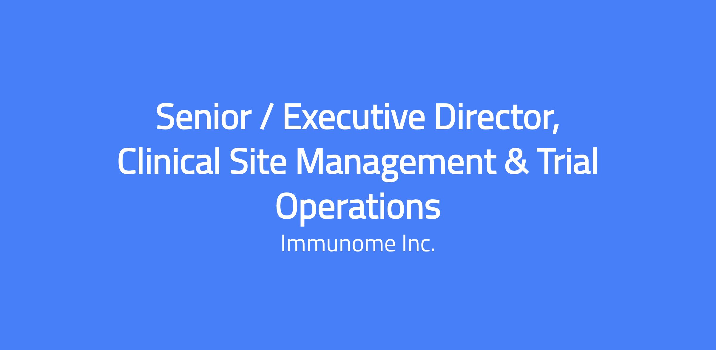 The Senior/Executive Director, Clinical Site Management & Trial Operations will build and lead Immunome’s global site management and trial operations function to deliver compliant, efficient clinical trials.