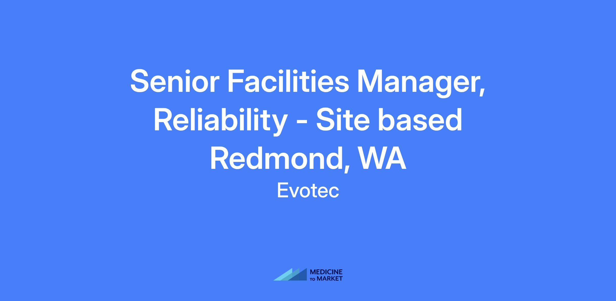 Senior Facilities Manager, Reliability - site based in Redmond, WA. Responsible for reliability engineering and facilities management across manufacturing and support equipment, driving cross-functional collaboration and continuous improvement in equipment performance and system reliability.