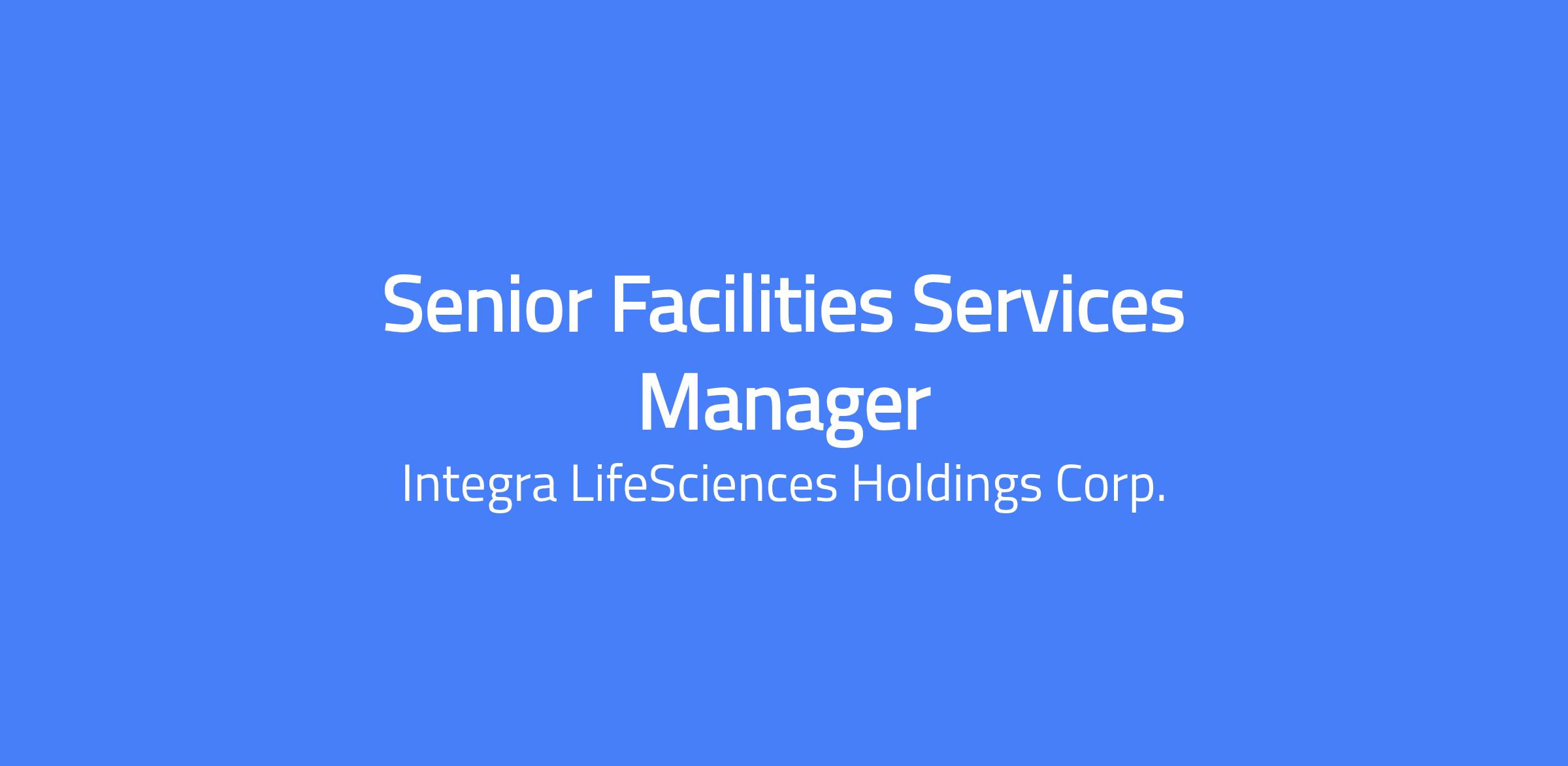 Changing lives. Building Careers. Joining us is a chance to do important work that creates change and shapes the future of healthcare. Thinking differently is what we do best. To us, change equals opportunity. Every day, our colleagues are challenging whatâs possible and making headway to innovate new treatment pathways to advance patient outcomes and set new standards of care. The Senior Facilities Services Manager is responsible for overseeing Integraâs Facilities portfolio via outsourced resources. This role will oversee the companyâs North American portfolio of Office, Laboratory, and Manufacturing service providers. The role will be responsible for oversite of suppliers and vendors engaged in the safe operation of office, laboratory, and technical areas of our footprint. The senior level manager will be required to interact with business groups throughout the Integra corporate structure including facility and operations leadership, legal, quality, and procurement. SUMMARY DESCRIPTION The Senior Facilities Services Manager is responsible for overseeing Integraâs Facilities portfolio via outsourced resources.⯠This role will oversee the companyâs North American portfolio of Office, Laboratory, and Manufacturing service providers. The role will be responsible for oversite of suppliers and vendors engaged in the safe operation of office, laboratory, and technical areas of our footprint. The senior level manager will be required to interact with business groups throughout the Integra corporate structure including facility and operations leadership, legal, quality, and procurement. REPORTING & MANAGEMENT SCOPE SUPERVISION RECEIVED Under direct supervision of Director Global Facilities Engineering SUPERVISION EXERCISED Supervision of contractors / consultants as needed based on project workload. KEY RESPONSIBILITIES Supervise service providers to ensure effective implementation of services in accordance with contractual, performance and quality expectations. Oversight of facility management partners, service providers and staff; liaising with both staff as well as leadership to achieve all goals and performance levels. Manage the delivery of facilities services to the portfolio of locations throughout North America and International. Develop and manage a budget including monthly review of actuals and budgets to ensure appropriate spend. Act as a primary point of contact for all facilities service providers. Develop and implement the strategy and annual management plan for suppliers and service providers. Support account wide initiatives such as compliance reviews, audits, training programs and other initiatives as appropriate, through driving implementation at a portfolio level Be accountable for space planning and delivery of moves, adds, and changes as well as small construction projects as required and act as the area point of escalation. Direct, communicate, and oversee maintenance programs relating to the condition and appearance of the interior & exterior of all facilities. Maintain reliability of systems and improving consistency across the portfolio. Develop and implement innovative programs and processes that reduce short and long term operating costs and increase productivity, benchmarking, best practices and continuous improvement. Ensure compliance with all health, safety, environment and risk management policies and procedures. Collaborate with functional areas throughout the company including finance, legal, supply chain and operations. Ensure all sites have appropriate full- time or contractual staff to manage facilities responsibilities, such as janitorial services, landscaping and general maintenance as appropriate; including, all contracts for all such services. Maintain accountability and performance of teams results through regular reporting of KPIs and metrics. Strategically position the regional portfolios for long term sustainability. Demonstrate a strong work ethic, dependability, accountability, and responsibility, coupled with high organizational skills; capable of multitasking, meeting deadlines, and working under pressure while maintaining a professional attitude; self-motivated and proactive, showing initiative without direct supervision. Demonstrate strong written and verbal communication skills, adept at managing multiple inquiries with time-sensitive deadlines; possesses excellent organizational, time management, and communication skills. REQUIRED SKILLS & MINIMUM QUALIFICATIONS Education Bachelorâs degree in an Engineering discipline (e.g., Mechanical, Electrical) or Facilities Management, or equivalent experience. Experience 10 years of diverse Facility Management/Operations experience, preferably within medical device or other regulated environment. 8â10 years of management experience leading technical teams. Proven ability to manage multiple projects simultaneously. Experience leading cross-functional teams and presenting to senior leadership. Demonstrated flexibility, multitasking, and high performance in dynamic environments. Skills & Competencies Strong organizational and communication skills. Strong budget and operational expense management. Proficiency in MS Office Suite, and Computerized Maintenance Management Systems (CMMS). Familiarity with health, safety, and environmental regulations related to manufacturing. Self-motivated team player with ability to work independently and collaboratively across all levels of the organization. Tools And Equipment Used This role requires regular use of tools and equipment relevant to the work environment. Examples include: General office equipment: Computers, printers, copiers, fax machines, and telephone communication systems. Additional tools may vary depending on the specific function (e.g., manufacturing, or laboratory work) PHYSICAL REQUIREMENTS The physical requirements listed below represent the motor and physical abilities necessary to successfully perform the essential duties of this position. 