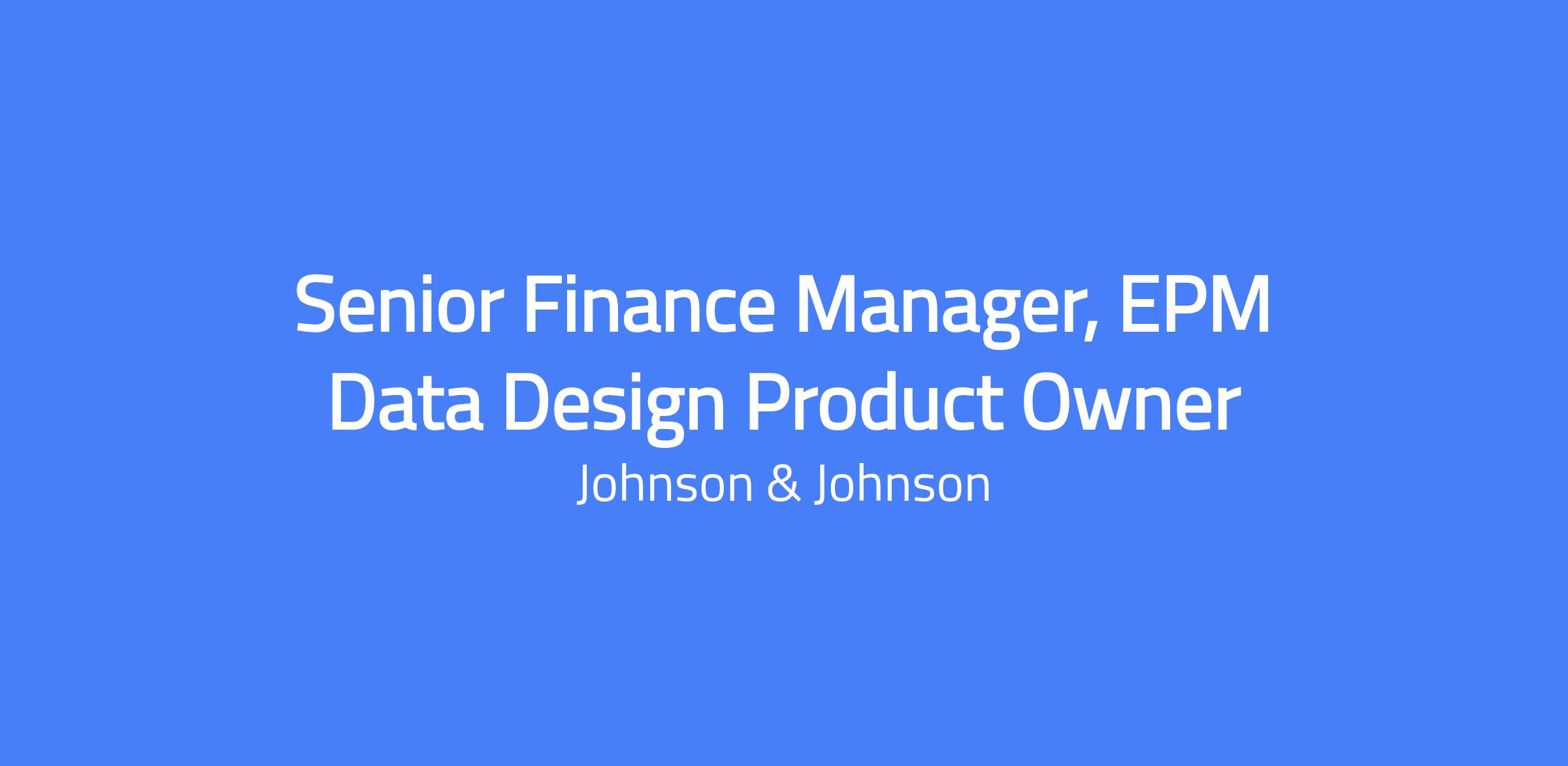 Senior Finance Manager, EPM Data Design Product Owner