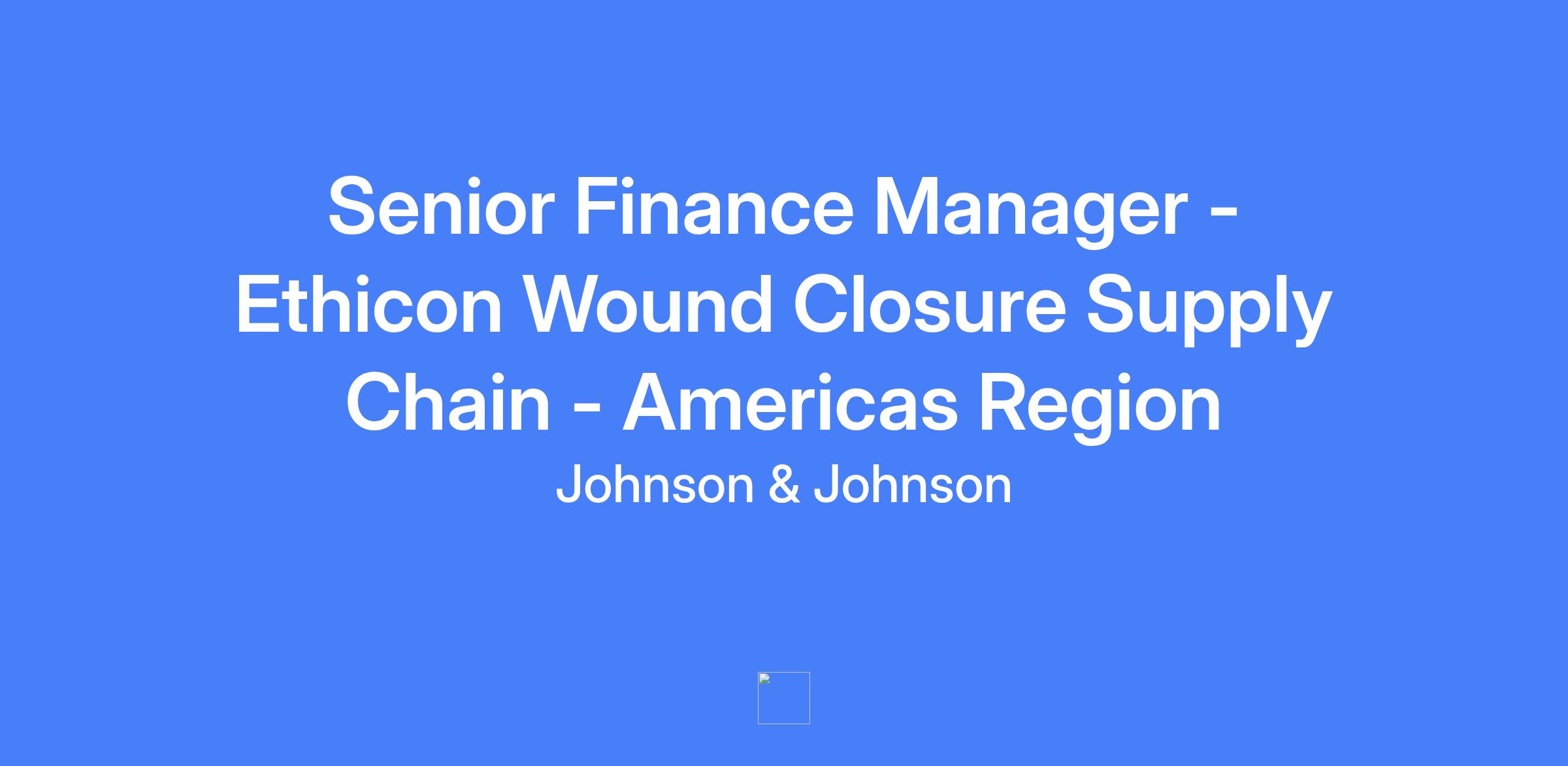 Senior Finance Manager to support Ethicon Wound Closure & Healing Supply Chain Americas regional manufacturing operations as well as product costing for the global portfolio. This position is based in Raritan, NJ.