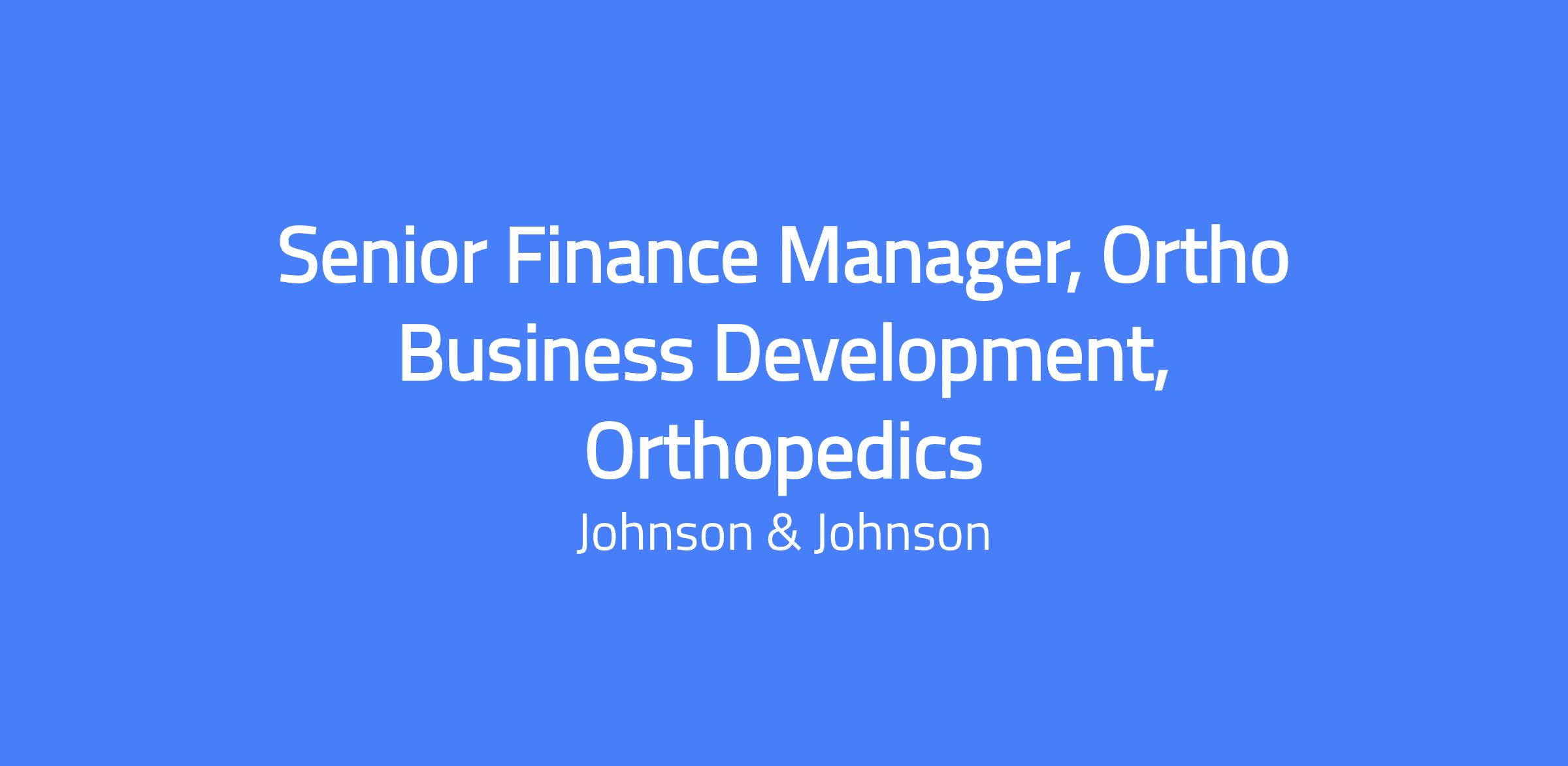 Senior Finance Manager, Ortho Business Development, Orthopedics. Location options include Raynham, MA; New Brunswick, NJ; Palm Beach Gardens, FL; Raritan, NJ; Titusville, NJ; West Chester, PA; or Warsaw, IN. Owns financial modeling for external innovation projects within the Orthopedics Business Unit, coordinating with commercial, R&D, supply chain, tax and enterprise inputs to align stakeholders. Leads analyses for licensing and acquisitions, due diligence, and appropriation requests for corporate review; acts as project manager and single point of contact to drive financial transparency and business goals.